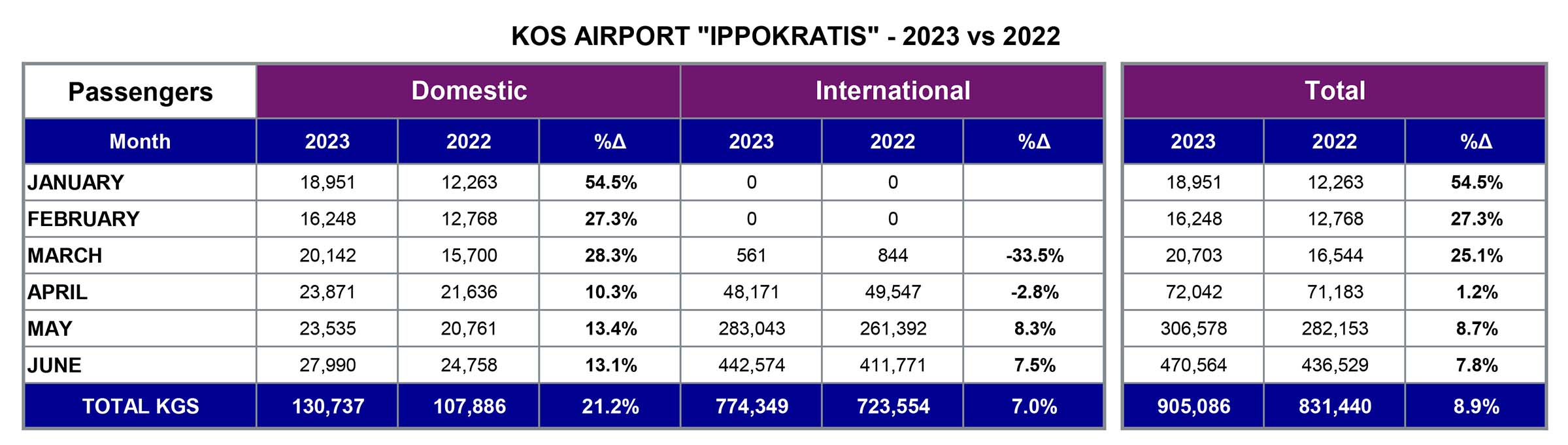 Το θετικό πρόσημο παρατηρήθηκε και σε επίπεδο πτήσεων οι οποίες έφτασαν τον Ιούνιο τις 37.475 έναντι 36.314 πτήσεων τον Ιούνιο του 2022 (+3,2%) και έναντι 35.080 τον Ιούνιο της χρυσής για τον τουρισμό χρονιάς του 2019 (+6,8%).