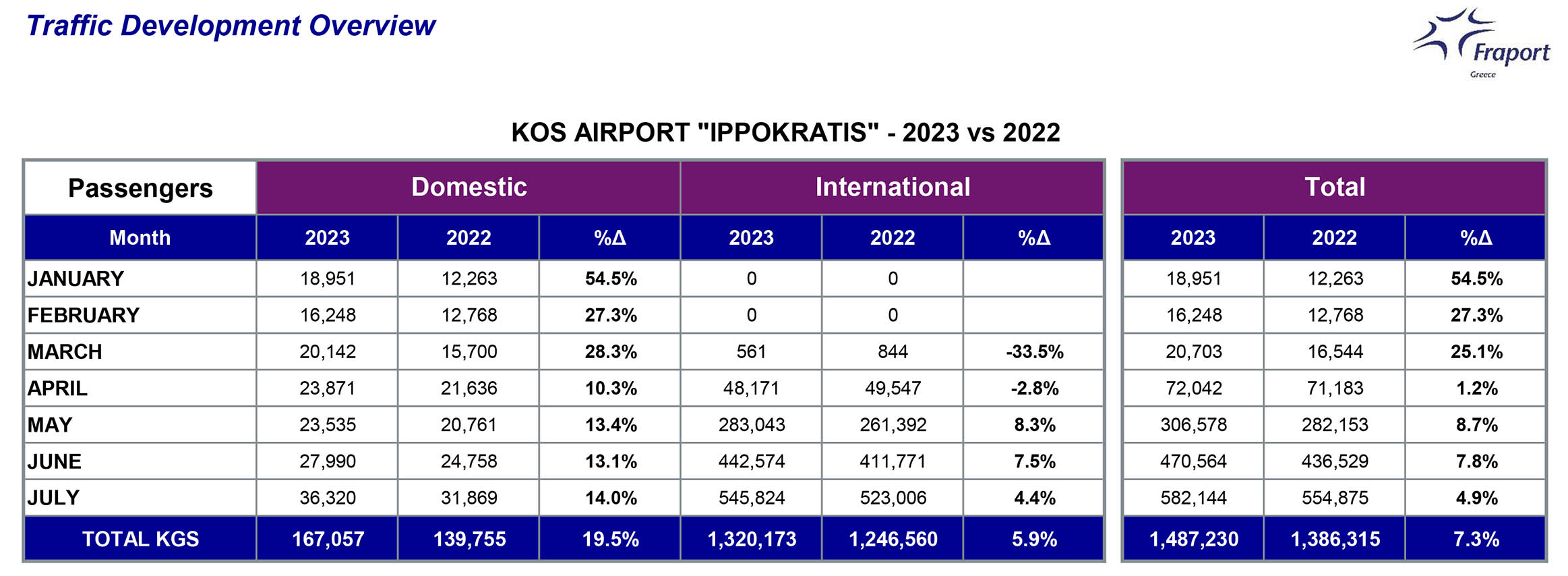 Εντυπωσιακή ήταν η άνοδος στην κίνηση εσωτερικού, με 864.221 επιβάτες τον φετινό Ιούλιο έναντι 784.900 επιβατών πέρυσι, ήτοι αύξηση 10,1%.