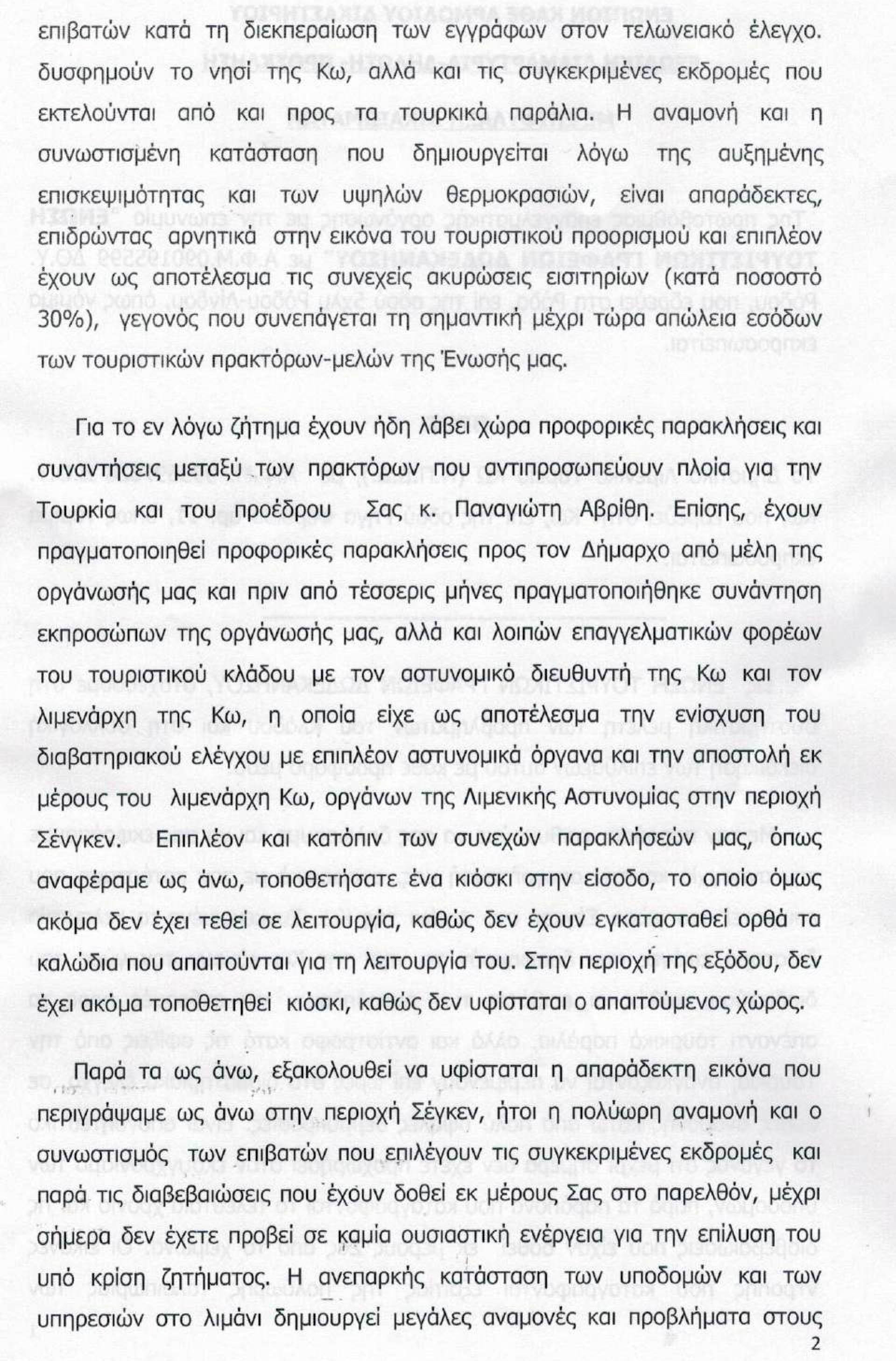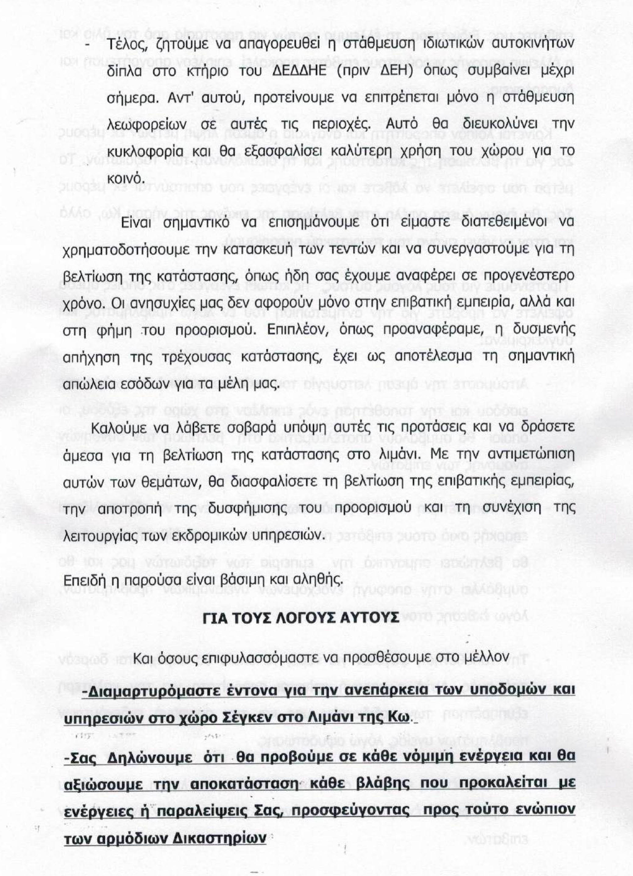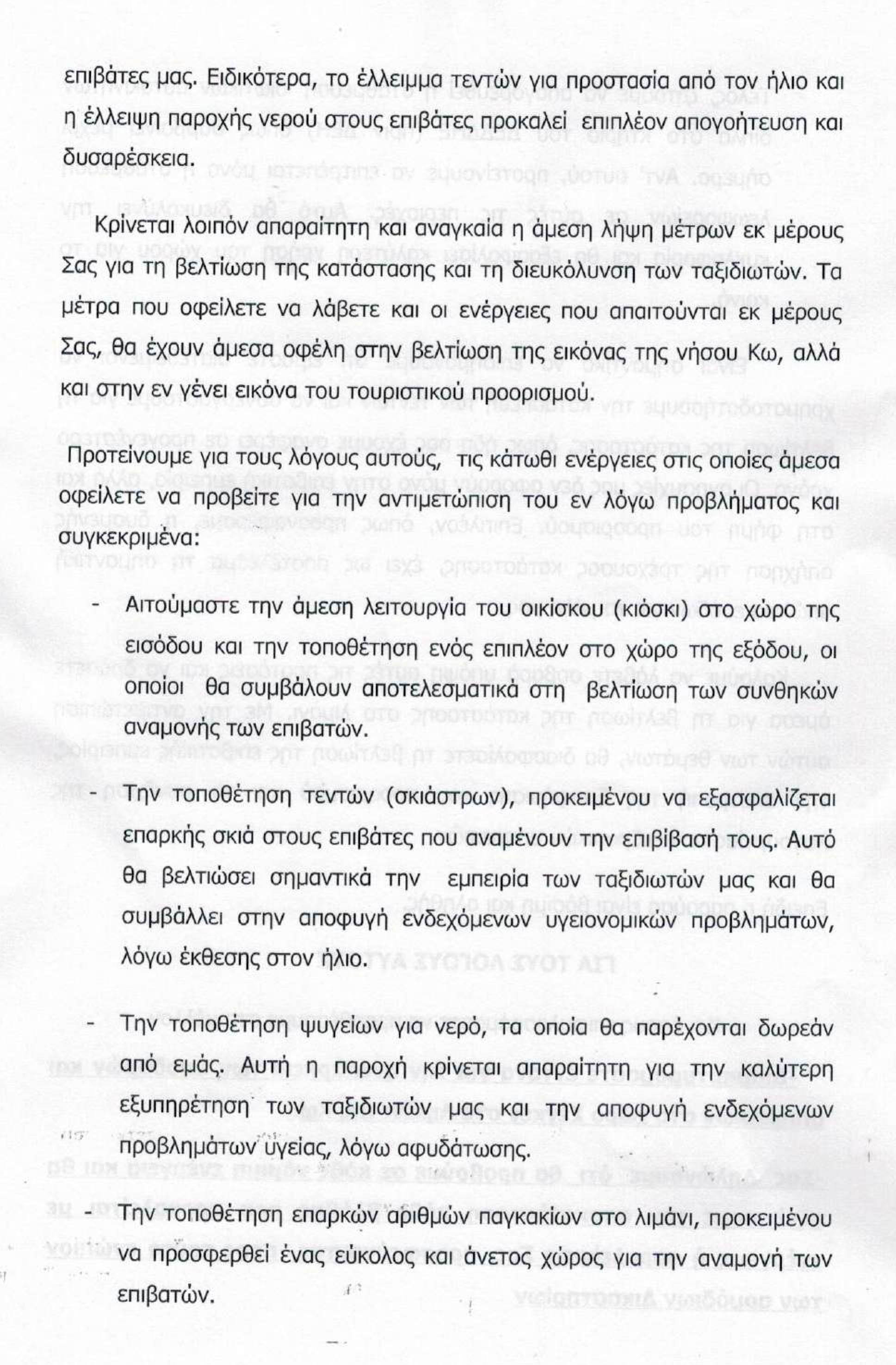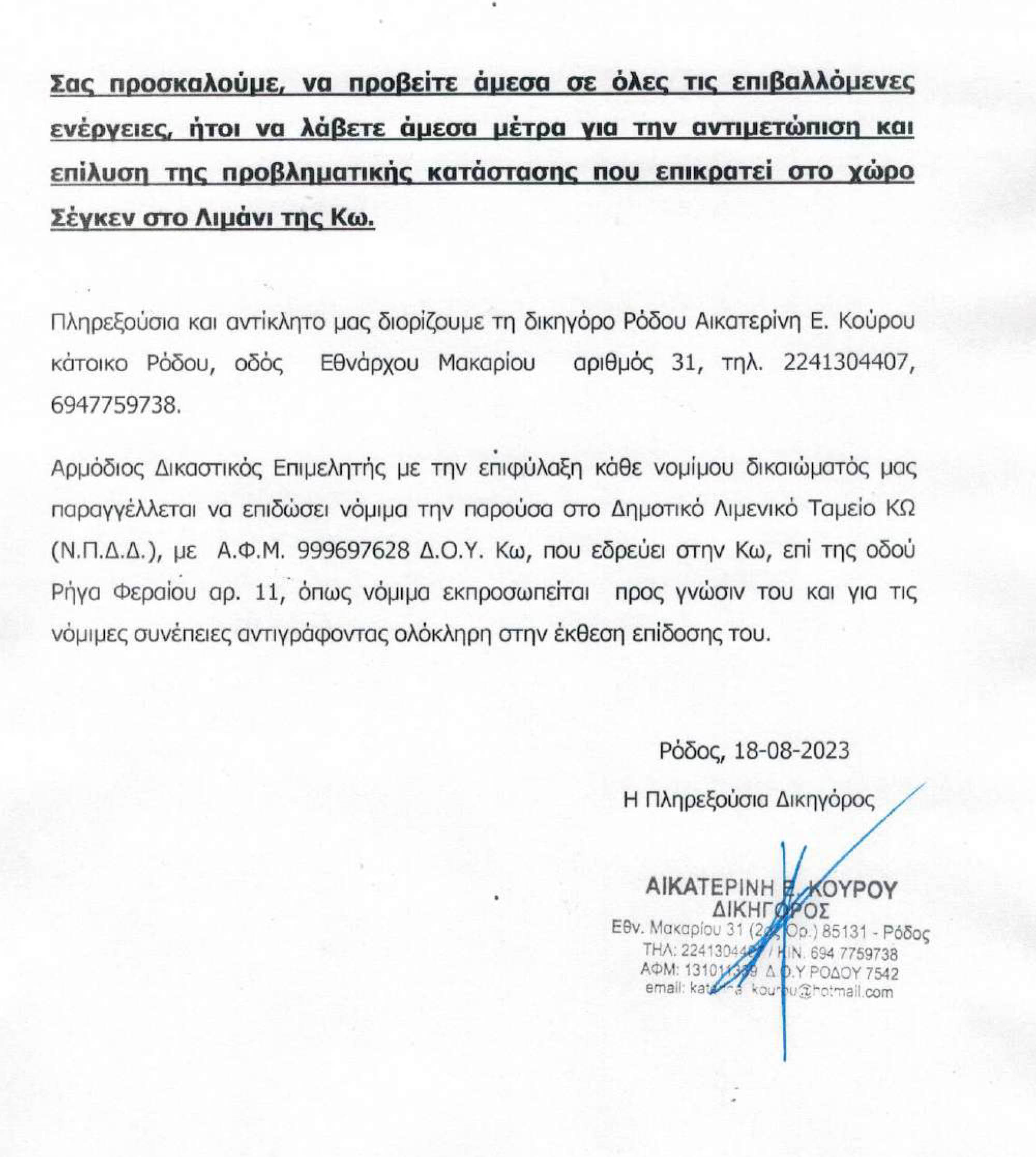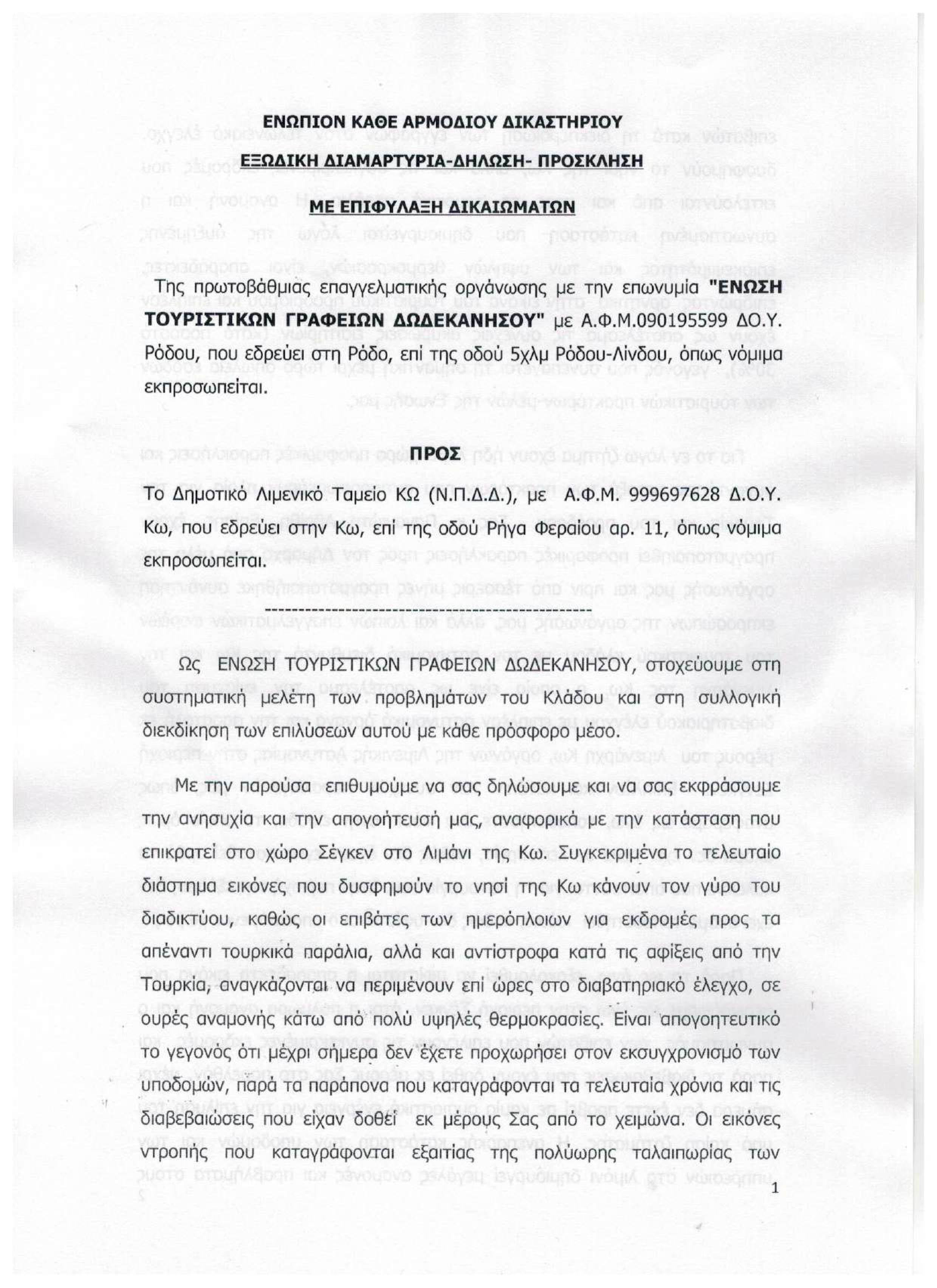 Εξώδικο της Ένωσης Τουριστικών Γραφείων Δωδ/σου προς το Λιμενικό Ταμείο Κω για την κατάσταση που επικρατεί στη Σέγκεν