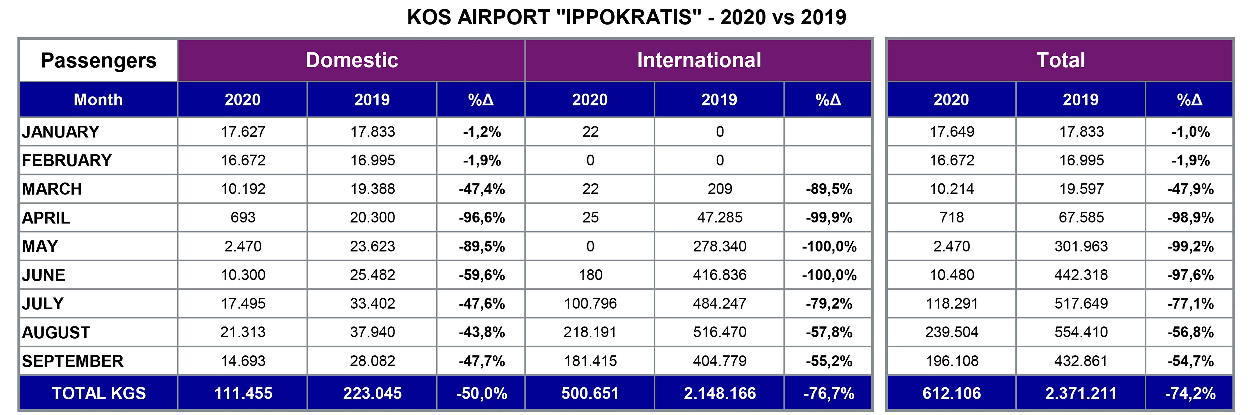 Πιο συγκεκριμένα φέτος τον Σεπτέμβριο, ήρθαν 83.784 επιβάτες από το εξωτερικό, ενώ συνολικά η σεζόν παρουσιάζει μείωση 76% με 254.257 διεθνείς αφίξεις στο 9μηνο φέτος έναντι 1.081.494 πέρυσι το ίδιο διάστημα.