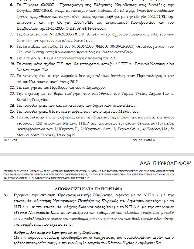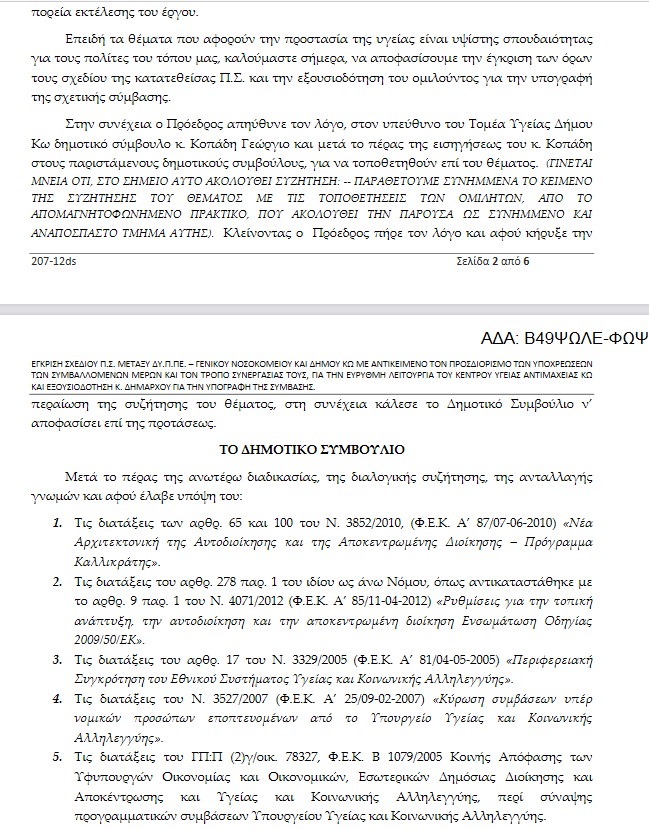 Σας στέλνω τις αποφάσεις της Εκτελεστικής Επιτροπής και του Δημοτικού Συμβουλίου, όπως επίσης και το σχέδιο του καταστατικού της Κοιν.Σ.Επ. «Κως Ασπίς Παροχής Υπηρεσιών Υγείας»