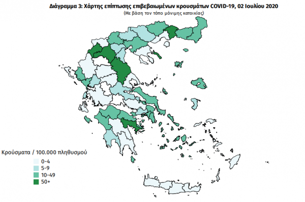 Από τα 5 εισαγόμενα κρούσματα στα αεροδρόμια, ένα αφορά στον Ελληνοαμερικάνο που διαγνώστηκε θετικός στην Κάρπαθο. Τα υπόλοιπα 4 εισαγόμενα κρούσματα προέρχονται, ένα από τη Βουλγαρία, ένα από τη Βοσνία, ένα από την Αλβανία και ένα από την Ινδία μέσω πτήσης από την Ολλανδία.