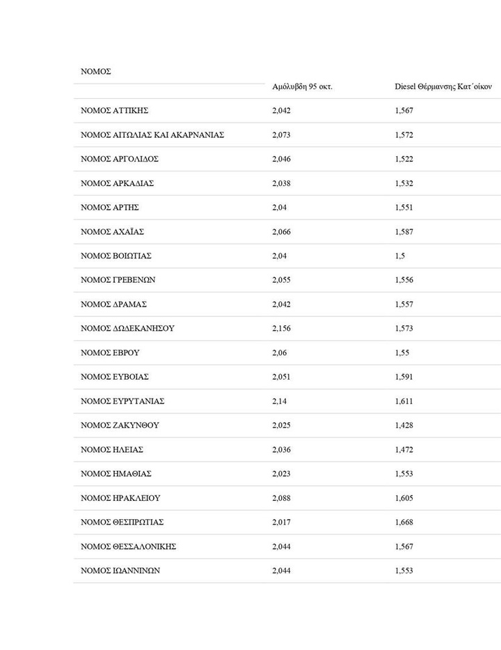 Πώς διαμορφώνονται οι τιμές της απλής αμόλυβδης βενζίνης και του πετρελαίου θέρμανσης πανελλαδικά: