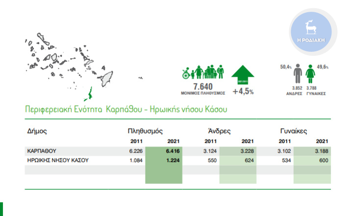 Αντίστοιχα αύξηση της τάξης του 4,5% παρουσιάζεται στην Περιφερειακή Ενότητα Κάσου, 10,6% στην περιφερειακή ενότητα της Κω και 6,6% στην περιφερειακή ενότητα Καλύμνου.
