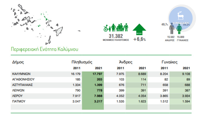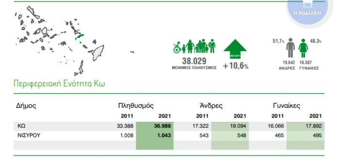 Σημαντικά είναι τα στοιχεία που προκύπτουν από την πληθυσμιακή αύξηση στα νησιά της Δωδεκανήσου, σύμφωνα με τα επίσημα αποτελέσματα της απογραφής που ανακοινώθηκαν χθες από τη Ελληνική Στατιστική Υπηρεσία.