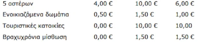 - Τα φυσικά πρόσωπα που διαθέτουν τρία ή περισσότερα ακίνητα σε βραχυχρόνια μίσθωση υποχρεούνται να κάνουν έναρξη επιχειρηματικής δραστηριότητας (με ανάλογες ασφαλιστικές εισφορές, τέλος επιτηδεύματος και ΦΠΑ από το πρώτο ακίνητο).