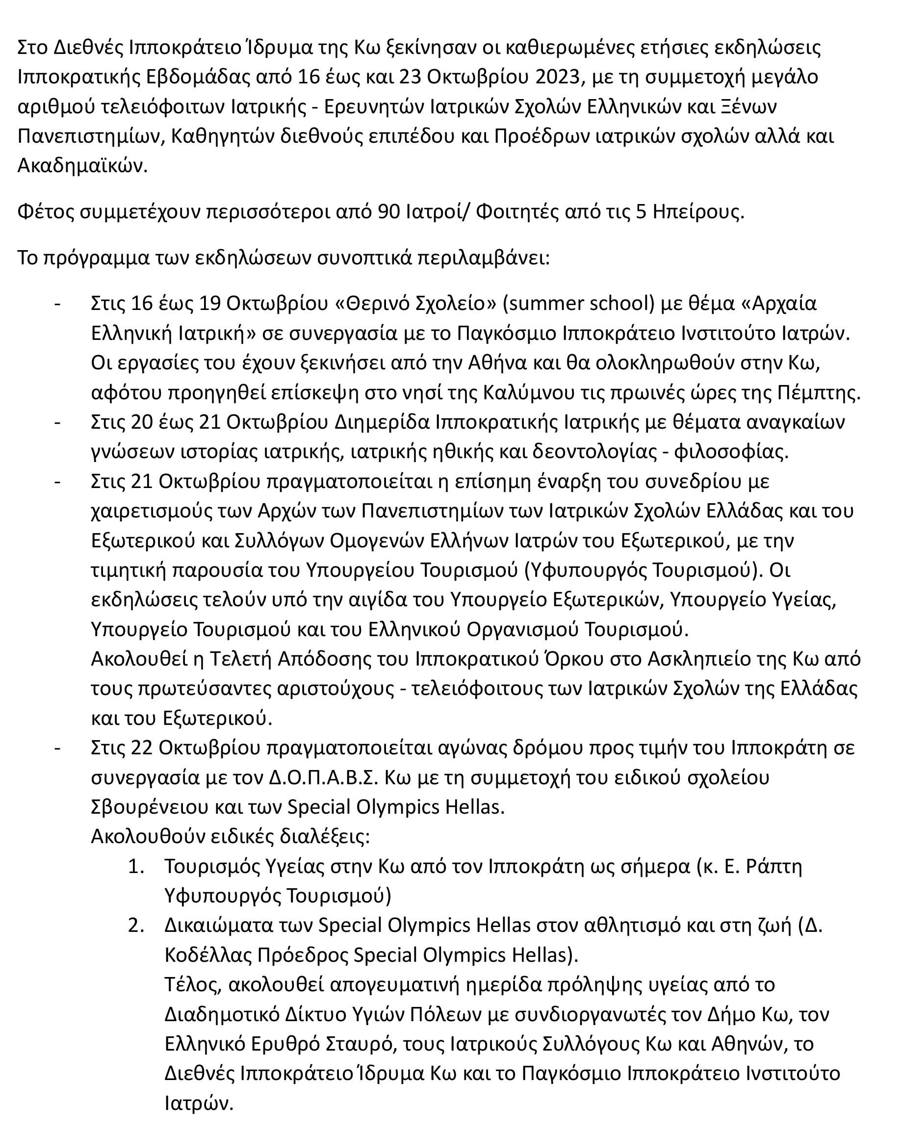 Συνεχίζονται στο ΔΙΙΚ οι εκδηλώσεις για την Ιπποκρατική εβδομάδα