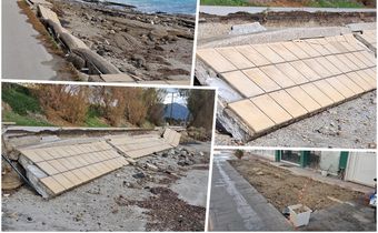 Ζημιές από την κακοκαιρία στην Καρδάμαινα - Κατέρρευσε πεζοδρόμιο στον παραλιακό δρόμο