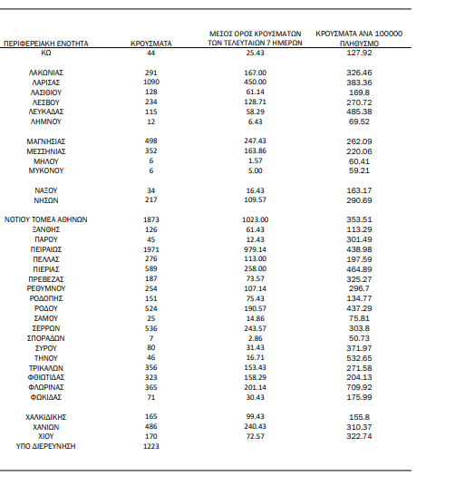 Η κατανομή των κρουσμάτων σε όλη τη χώρα: