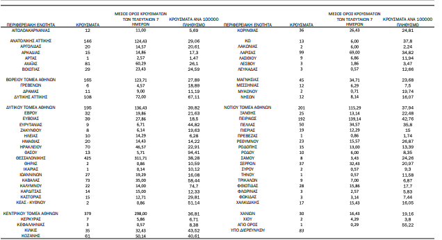 Ο συνολικός αριθμός των κρουσμάτων ανέρχεται σε 311.033(ημερήσια μεταβολή +1.0%), εκ των οποίων 51.3% άνδρες.1 Με βάση τα επιβεβαιωμένα κρούσματα των τελευταίων 7 ημερών, 57θεωρούνται σχετιζόμενα με ταξίδι από το εξωτερικό και 2.990 είναι σχετιζόμενα με ήδη γνωστό κρούσμα.