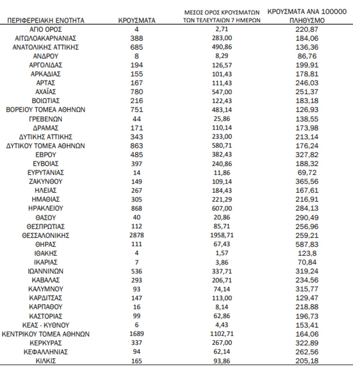Με βάση τα επιβεβαιωμένα κρούσματα των τελευταίων 7 ημερών, 399 θεωρούνται σχετιζόμενα με ταξίδι από το εξωτερικό και 2.392 είναι σχετιζόμενα με ήδη γνωστό κρούσμα.