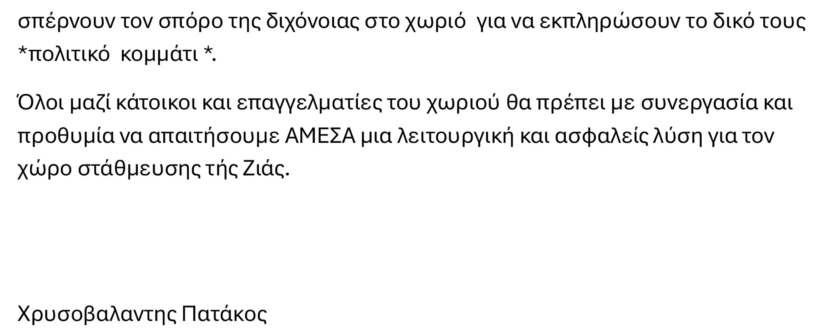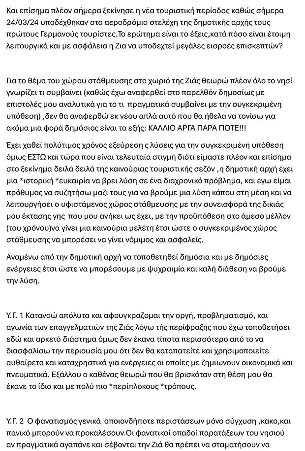X. Πατάκος: Να απαιτήσουμε άμεσα μία ασφαλή και λειτουργική λύση για το πάρκινκ στη Ζιά