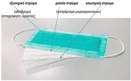 Περιγραφή των στρωμάτων της απλής χειρουργικής μάσκας