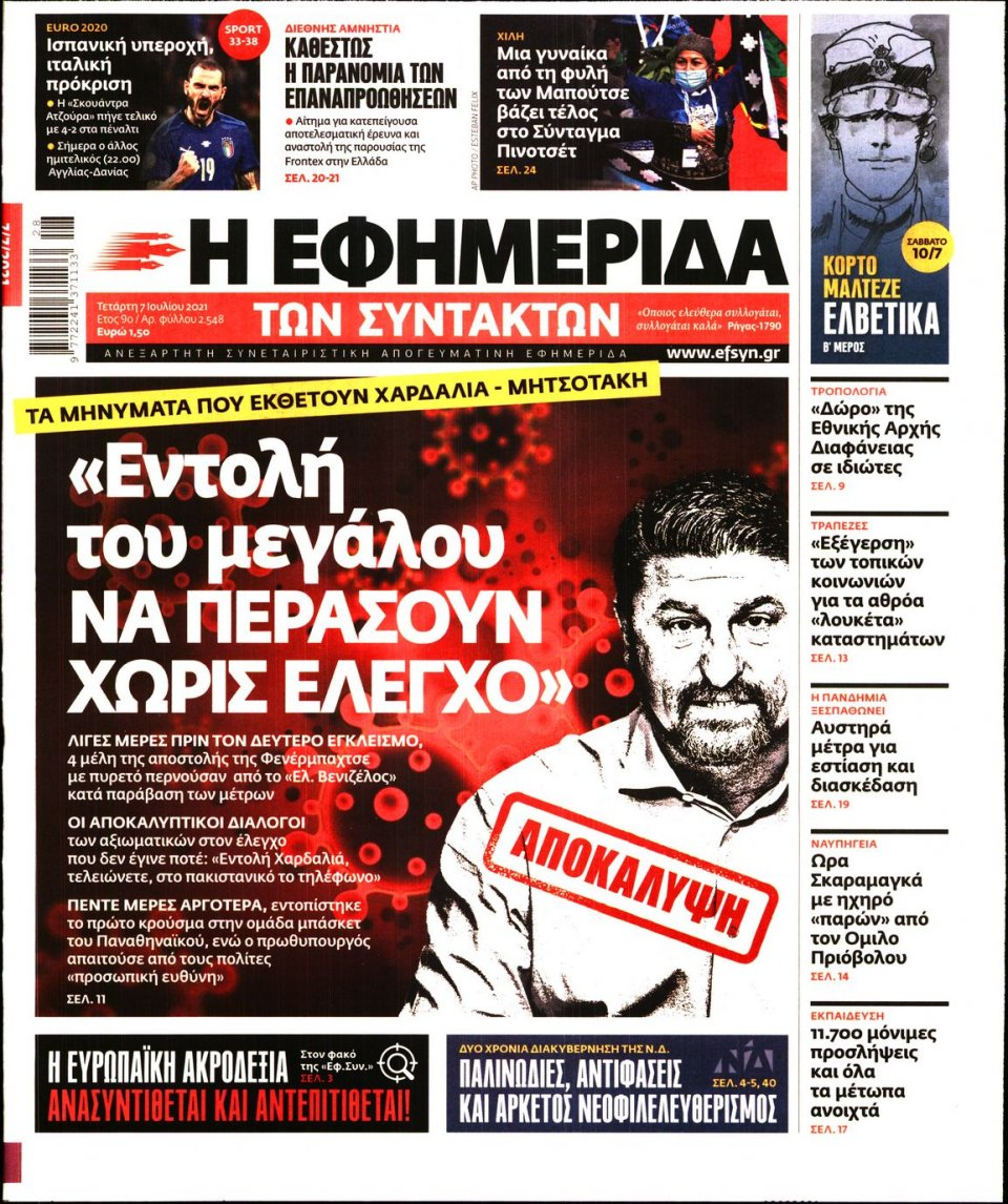 Σύμφωνα με το ρεπορτάζ στην έντυπη έκδοση της εφημερίδας, που υπογράφει η δημοσιογράφος Άντα Ψάρρα, λίγο πριν ανακοινώσει η κυβέρνηση το σκληρό lockdown, τέσσερα μέλη της αποστολής της τουρκικής ομάδας, που είχαν πυρετό, πέρασαν από τον έλεγχο στο αεροδρόμιο Ελευθέριος Βενιζέλος, με «εντολή Χαρδαλιά».