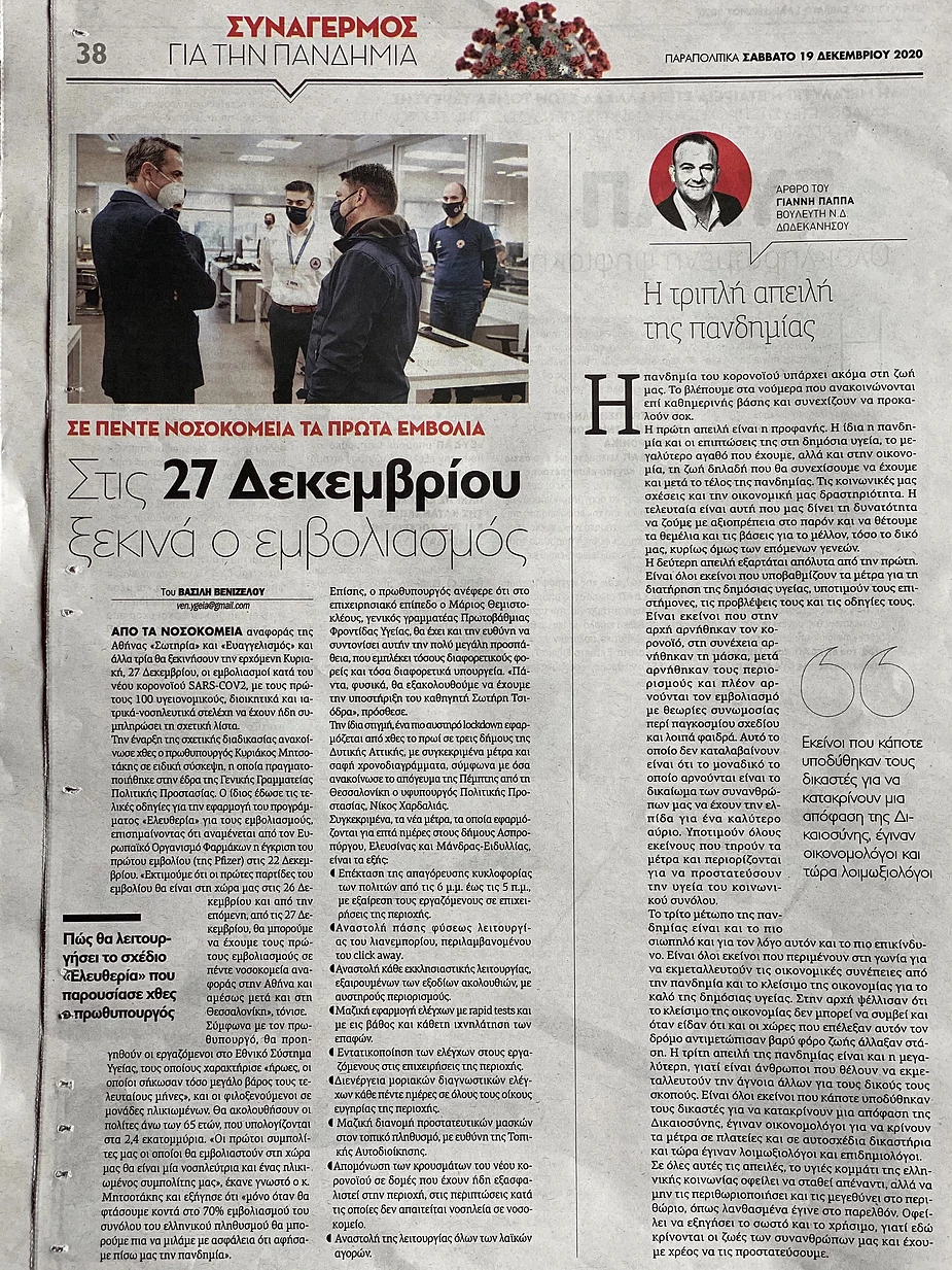 Η τριπλή απειλή της πανδημίας - Άρθρο του Γ. Παππάς στα "Παραπολιτικά"