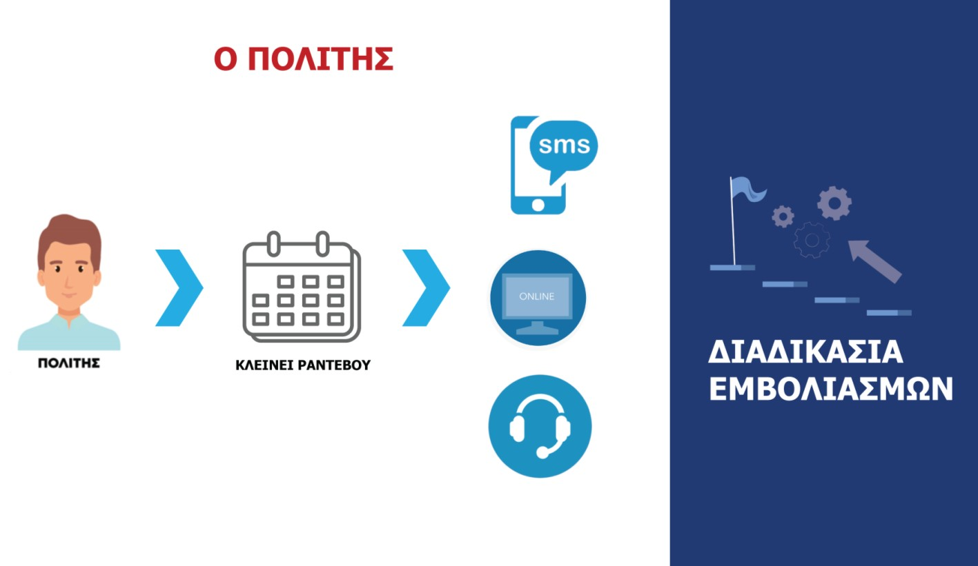 Οι εμβολιασμοί θα πραγματοποιούνται κατόπιν ραντεβού μες τις αρμόδιες αρχές. Υπάρχουν τρεις εναλλακτικές για ραντεβού: Είτε μέσω αποστολής SMS, είτε διαδικτυακά, είτε μέσω τηλεφώνου.