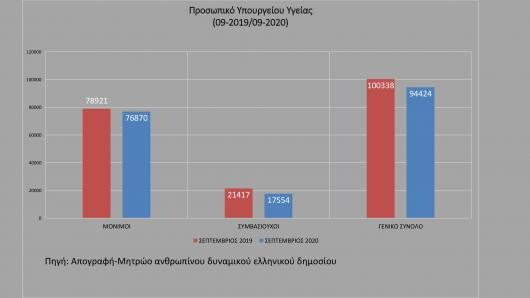 Τώρα, όσον αφορά το ανθρώπινο δυναμικό, έχουμε κατ’ επανάληψη πει ότι καταφέραμε μέσα στο ίδιο δύσκολο περιβάλλον να γίνουν 7.000 μόνιμες προσλήψεις και να έχουμε δρομολογήσει με πράξη Υπουργικού Συμβουλίου με εγκρίσεις δηλαδή προκήρυξης, κάποιες από αυτές μάλιστα τις πάγωσε έσπευσε να τις παγώσει η Κυβέρνηση όταν ανέλαβε, άλλες 3.500. Συν ένας πολύ μεγάλος αριθμός συμβασιούχων παντός τύπου και επικουρικού προσωπικού και συμβασιούχων του ΟΑΕΔ και τα λοιπά.
