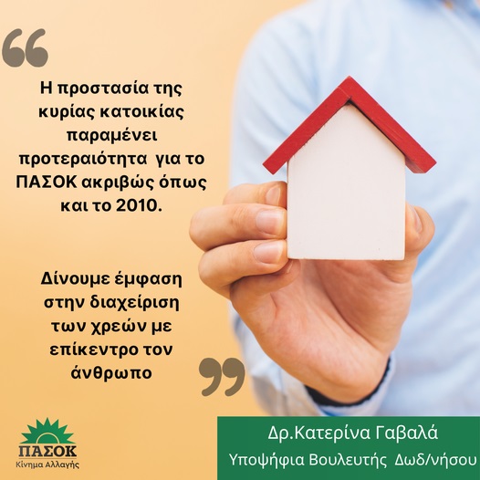 Με αφορμή το μείζον ζήτημα των πλειστηριασμών μέσω funds αλλά και το διαχρονικό πρόβλημα της μη προστασίας της πρώτης κατοικίας των δανειοληπτών, η υποψήφια Βουλευτής Δωδεκανήσου ΠΑΣΟΚ-ΚΙΝΑΛ Κατερίνα Γαβαλά δήλωσε ότι: