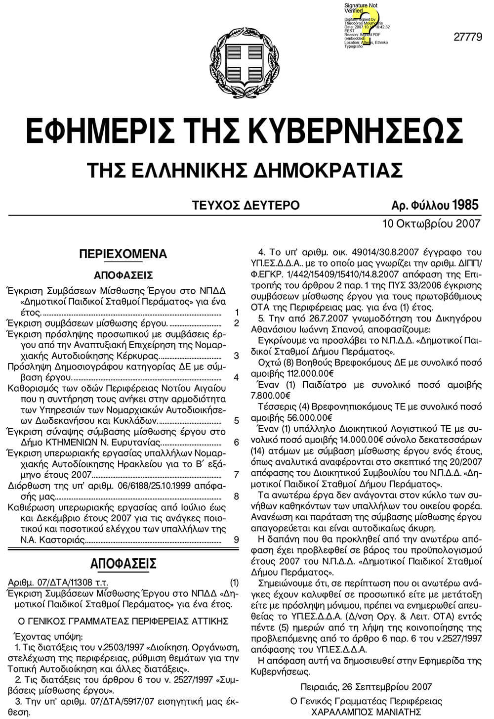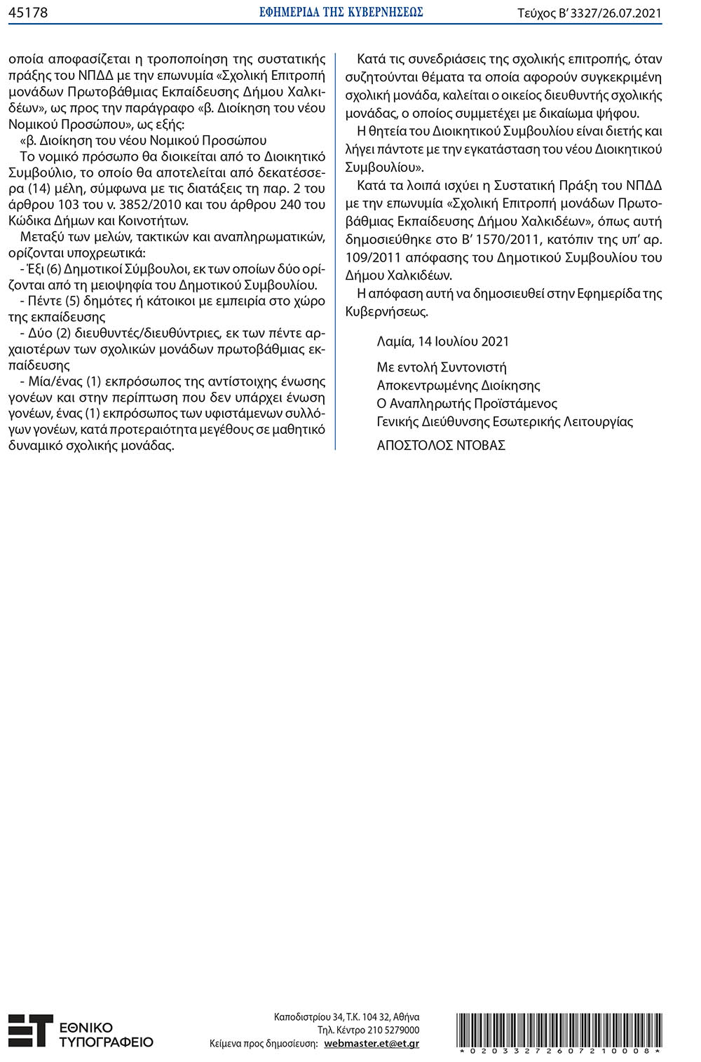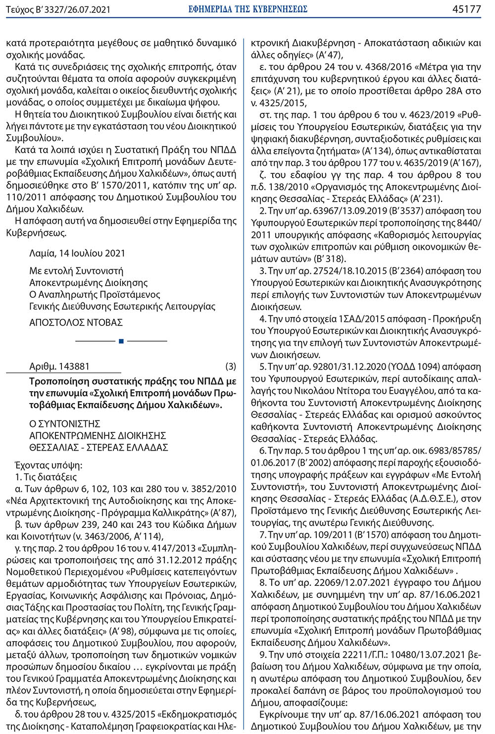 Σύμφωνα με το ΦΕΚ 1985/10-10-2007 και το ΦΕΚ 3327/26-07-2021