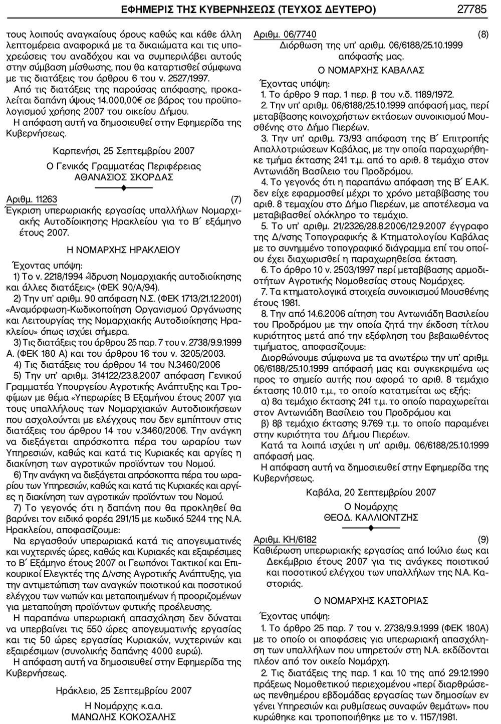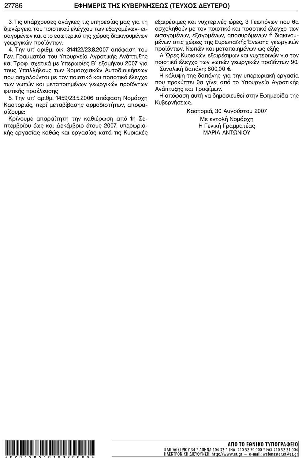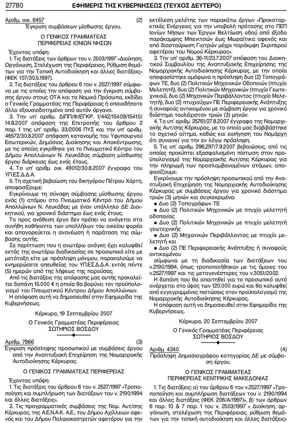 Σύμφωνα με το ΦΕΚ 1985/10-10-2007 και το ΦΕΚ 3327/26-07-2021