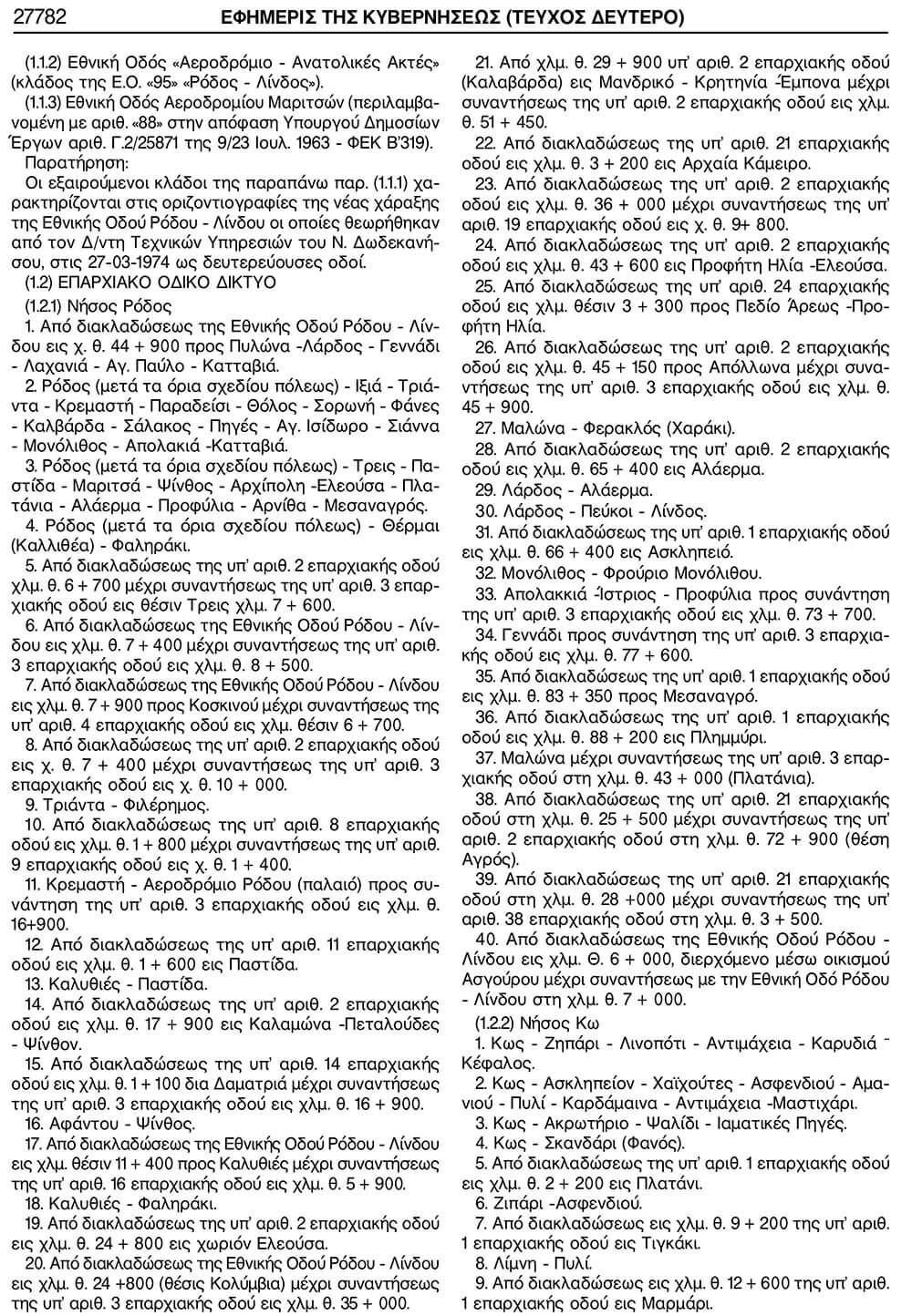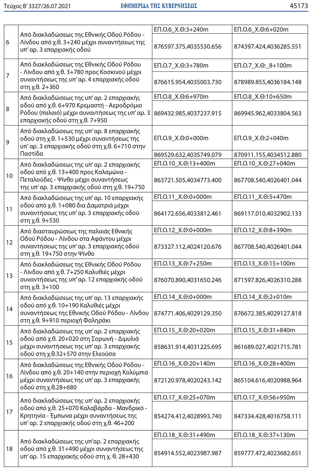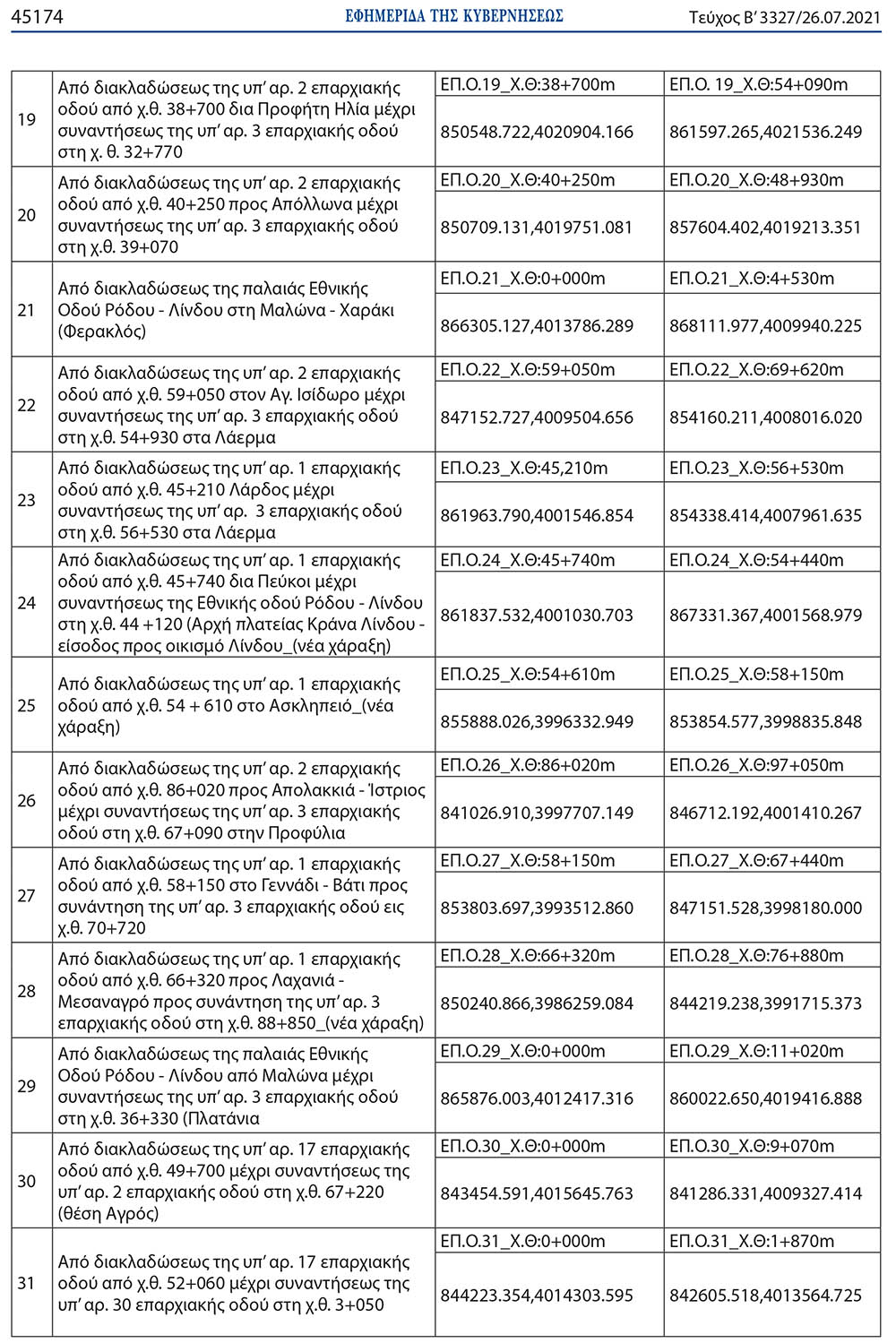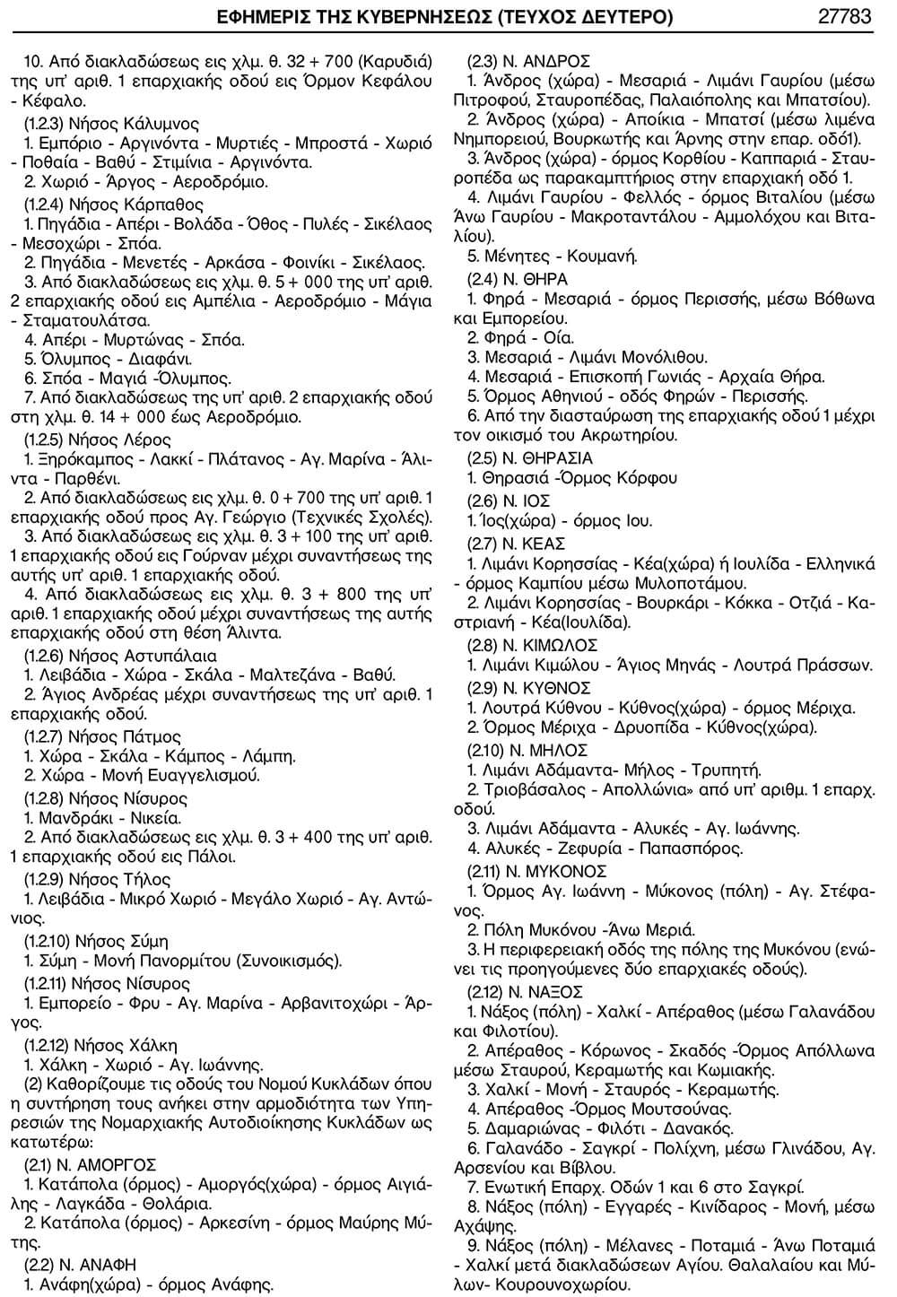 2) Το ΦΕΚ 3327/26-07-2021 (εδάφιο 1) με το οποίο, σύμφωνα με την Απόφαση αρ. 33582 του Συντονιστή Αποκεντρωμένης Διοίκησης Αιγαίου, έγινε τροποποίηση της με υπ’ αρ.15844/14-09-2007 Απόφασης του Γενικού Γραμματέα Περιφέρειας Νοτίου Αιγαίου με τίτλο «Καθορισμός των οδών Περιφέρειας Νοτίου Αιγαίου που η συντήρησή τους ανήκει στην αρμοδιότητα των Υπηρεσιών των Νομαρχιακών Αυτοδιοικήσεων Δωδεκανήσου και Κυκλάδων» (Β’ 1985), ως εξής:
