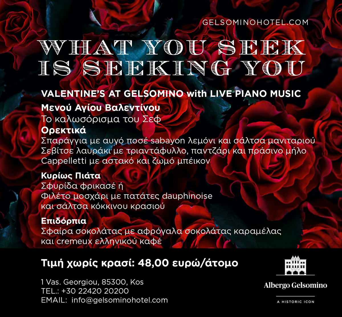 ΑΠΟΛΑΥΣΤΕ ΜΙΑ ΞΕΧΩΡΙΣΤΗ ΒΡΑΔΙΑ ΤΟΥ ΑΓΙΟΥ ΒΑΛΕΝΤΙΝΟΥ ΣΤΟ "ALBERGO GELSOMINO"