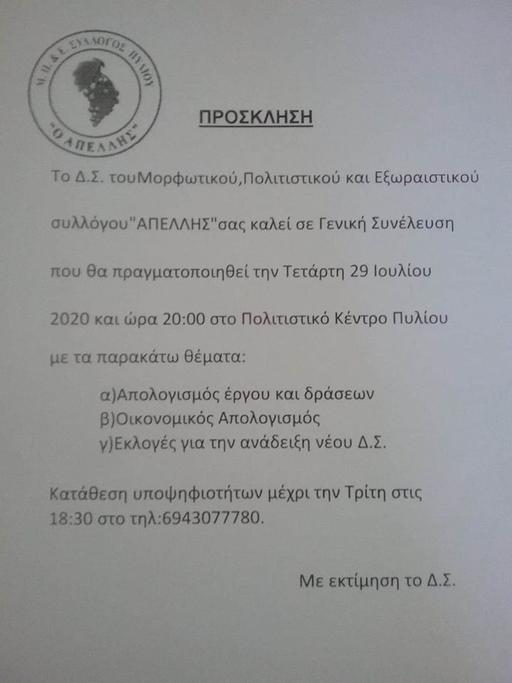 ΕΚΛΟΓΕΣ ΣΤΟΝ ΠΟΛΙΤΙΣΤΙΚΟ ΣΥΛΛΟΓΟ "ΑΠΕΛΛΗΣ"