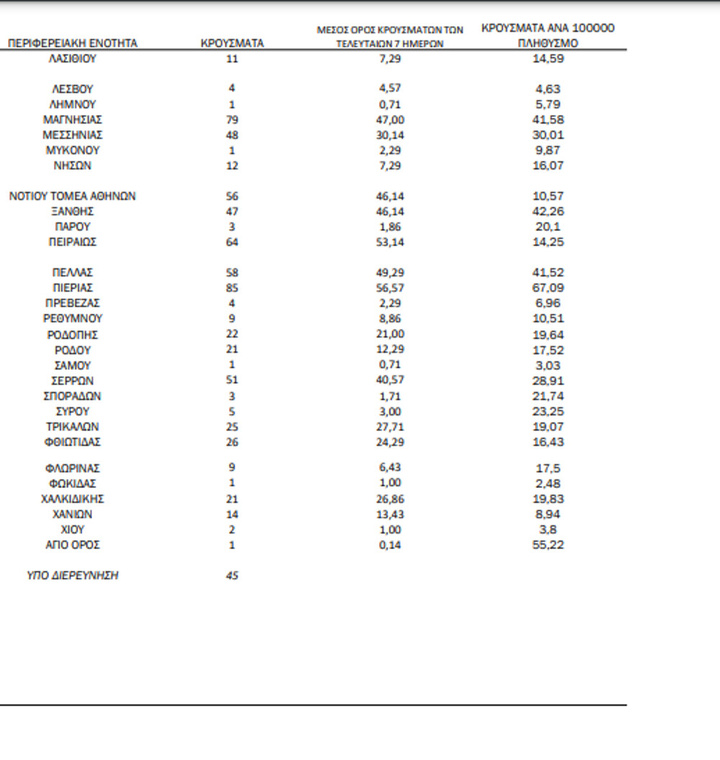 Πιο συγκεκριμένα 21 θετικά δείγματα βρέθηκαν στην περιφερειακή ενότητα Ρόδου, 9 στην Π.Ε. Κω, τρία στην αντίστοιχη της Καλύμνου και μόλις ένα στην ενότητα Καρπάθου.