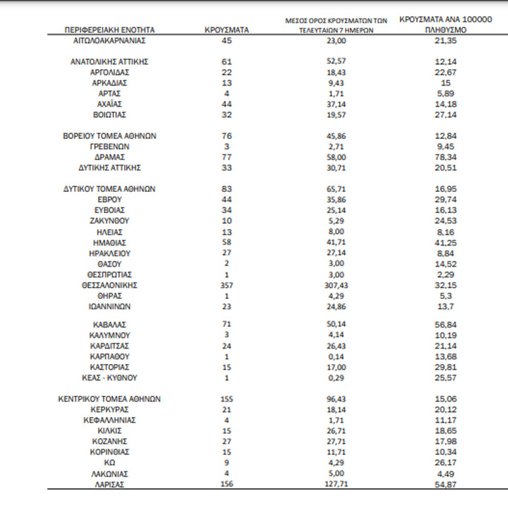 Ο συνολικός αριθμός των κρουσμάτων ανέρχεται σε 673.317 (ημερήσια μεταβολή +0.3%), εκ των οποίων 50.9% άνδρες. Με βάση τα επιβεβαιωμένα κρούσματα των τελευταίων 7 ημερών, 119 θεωρούνται σχετιζόμενα με ταξίδι από το εξωτερικό και 3.287 είναι σχετιζόμενα με ήδη γνωστό κρούσμα.