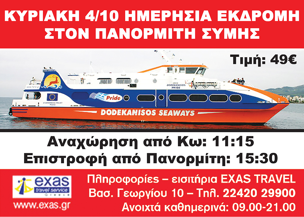 ΜΟΝΟΗΜΕΡΗ ΕΚΔΡΟΜΗ ΣΤΟΝ ΠΑΝΟΡΜΙΤΗ ΣΥΜΗΣ