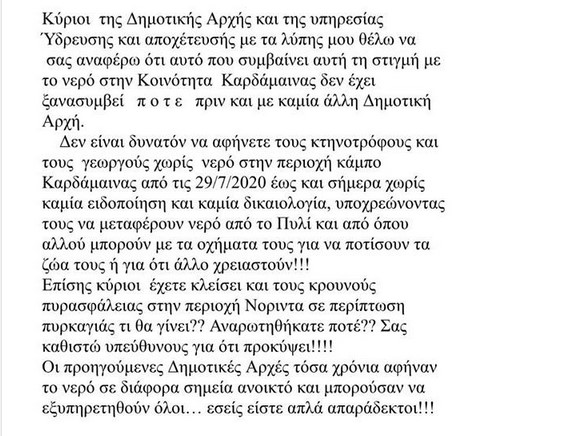 Νίκος Μυλωνάς του Ευαγγέλου: Αυτό που συμβαίνει αυτή τη στιγμή με το νερό στην Καρδάμαινα δεν έχει ξανασυμβεί ποτέ