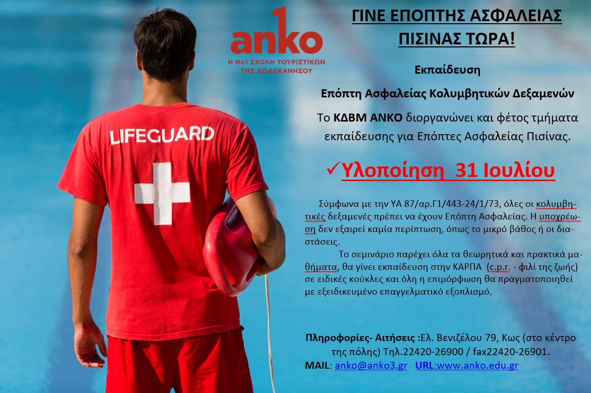 ΝΕΟ ΣΕΜΙΝΑΡΙΟ ΓΙΑ ΕΠΟΠΤΕΣ ΚΟΛΥΜΒΗΤΙΚΩΝ ΔΕΞΑΜΕΝΩΝ 31 ΙΟΥΛΙΟΥ