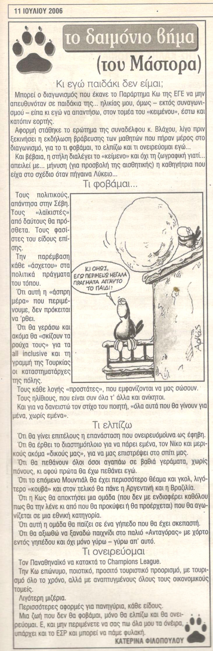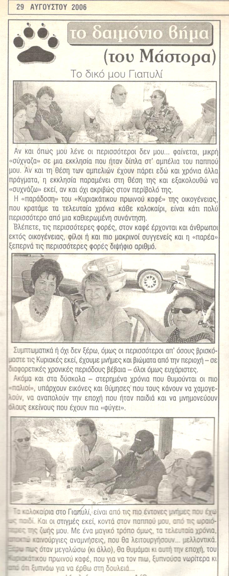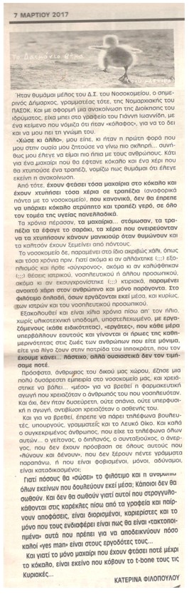 Αποχαιρετώντας σε, θέλω να διαβάσω 3 άρθρα σου, “Μάστορα”, το πρώτο για το Νοσοκομείο και όσα γλαφυρά αλλά επίκαιρα έγραφες πριν 4 χρόνια, για το δικό σου Γυαπυλί και τέλος για όσα προφητικά έλεγες ότι φοβόσουν, για το τι ήλπιζες και τι ονειρευόσουν.