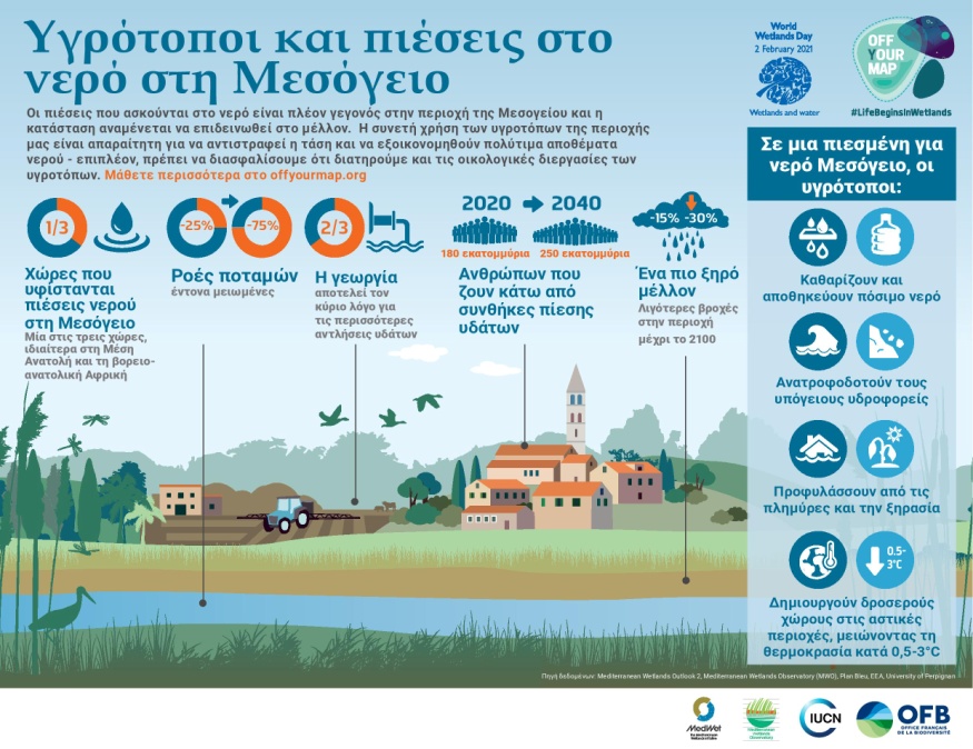 - Παγκόσμια Ημέρα Υγροτόπων 2021 - 50 χρόνια Σύμβασης ΡΑΜΣΑΡ- το θέμα για το 2021 είναι “Υγρότοποι και νερό”. Οι υγρότοποι είναι πηγή γλυκού νερού. Τα τελευταία χρόνια αντιμετωπίζουμε μια αυξανόμενη κρίση του γλυκού νερού, που απειλεί τους ανθρώπους και τον πλανήτη μας. Χρησιμοποιούμε περισσότερο γλυκό νερό από ότι η φύση μπορεί να αναπληρώσει και καταστρέφουμε το οικοσύστημα, από το οποίο εξαρτώνται το νερό και η ζωή γενικότερα.