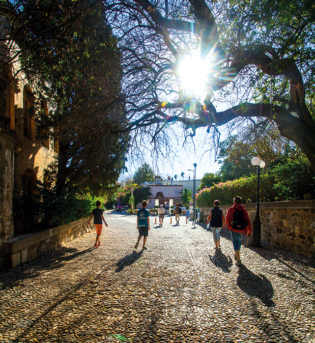 Στα μπαλκόνια των δωματίων του βρίσκω συχνά καταφύγιο όταν θέλω να σχεδιάσω τις διαδρομές μου με τα πόδια ή το ποδήλατο ανάμεσα στα αξιοθέατα της πόλης, που όλα μαζί συνθέτουν ένα υπαίθριο «ανοιχτό» μουσείο, ή τις εξορμήσεις μου στις γύρω περιοχές. Αφού απαντήσω στο μόνιμο δίλημμα «Ασύρτικο» Χατζηεμμανουήλ ή «Chardonnay» Tριανταφυλλοπούλου ?(και τα δύο οινοποιεία είναι επισκέψιμα και προσφέρουν οινογευσίες), θα χαζέψω για λίγο απέναντι τη φωτισμένη Αλικαρνασσό και τα κότερα που μπαινοβγαίνουν στη μαρίνα, και έπειτα θα κλείσω τα μάτια και θα καρφώσω το μολύβι πάνω στον χάρτη. Όπου και να προσγειωθεί η μύτη του, ξέρω ότι θα αξίζει τον κόπο. Ωστόσο, τις περισσότερες φορές «κλέβω» και με μισάνοιχτα μάτια επιλέγω το ορεινό χωριό Ασώματος στην περιοχή του Ασφεντιού. Διότι έχω εθιστεί να αράζω στην αυλή του «Καζίνο», να πίνω δροσερό κρασί και το απόγευμα να παρακολουθώ πώς λαμπαδιάζει ο ουρανός μέσα από την πέτρινη πόρτα της ομώνυμης εκκλησίας.