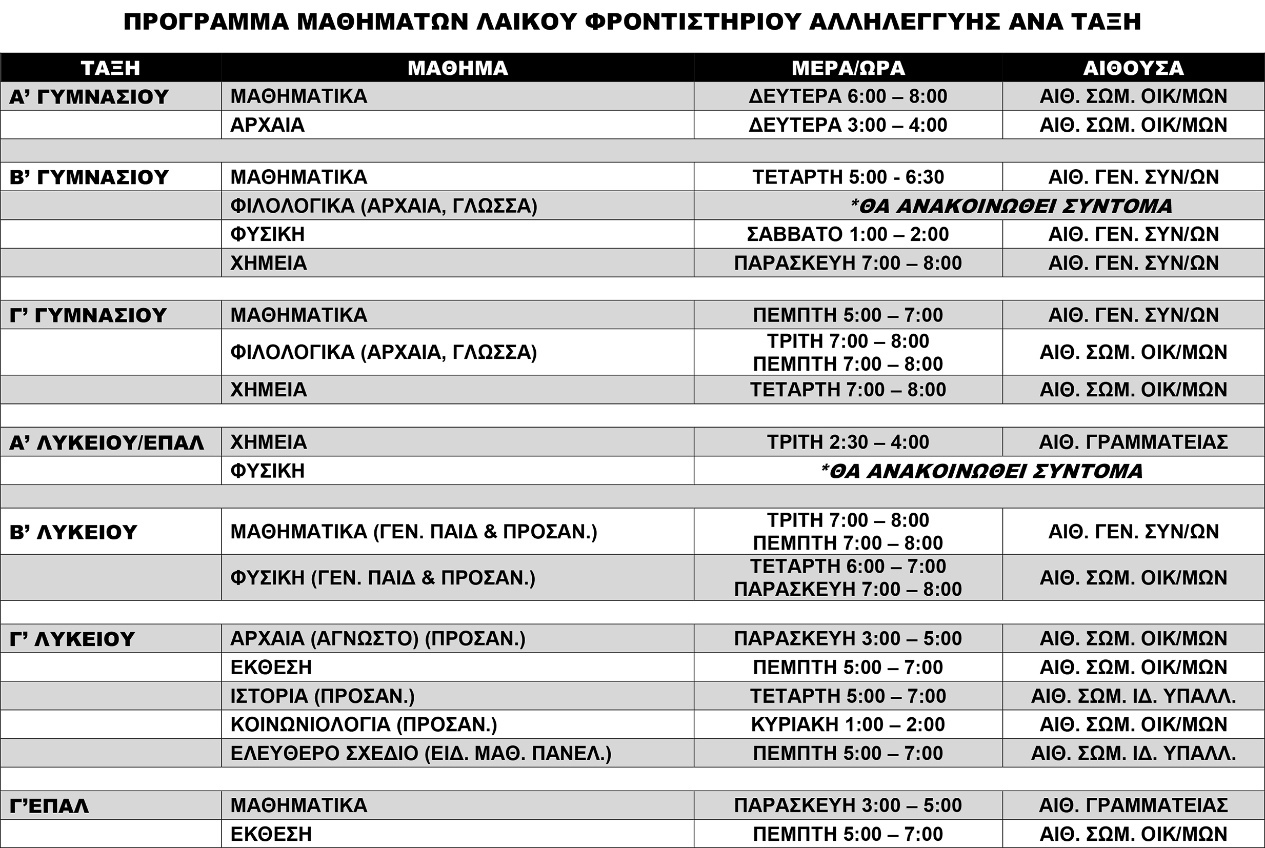 Παράλληλα, για την καλύτερη προετοιμασία, η έναρξη των μαθημάτων μεταφέρεται για την Δευτέρα 19 Οκτώβρη με βάση το πρόγραμμα που ανακοινώθηκε στην συνάντηση.