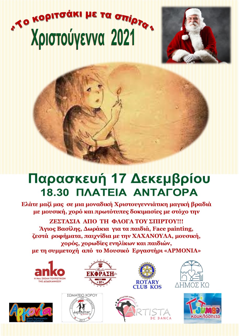 Το Ράδιο Έκφραση υπό την Αιγίδα του Δήμου Κω διοργανώνει Χριστουγεννιάτικη εκδήλωση με τίτλο «Το κοριτσάκι με τα σπίρτα», την Παρασκευή 17 Δεκεμβρίου 2021 στις 18:30 στην Πλατεία Ανταγόρα.