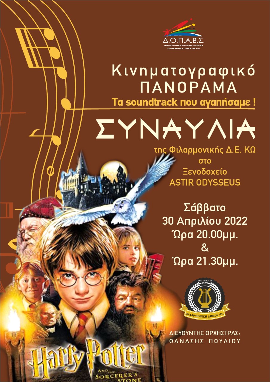 Ο Δ.Ο.Π.Α.Β.Σ. και η Φιλαρμονική Ορχήστρας της Δημοτικής Ενότητας Κω υπό την διεύθυνση του Μαέστρου και Αρχιμουσικού κ. Αθανάσιου Πουλιού στα πλαίσια των Πολιτιστικών εκδηλώσεων 2022 παρουσιάζουν ένα αφιέρωμα στον Ελληνικό κινηματογράφο με τίτλο «Κινηματογραφικό Πανόραμα» το Σάββατο 30 Απριλίου 2022 στην αίθουσα εκδηλώσεων του Ξενοδοχείου Astir Odysseas.