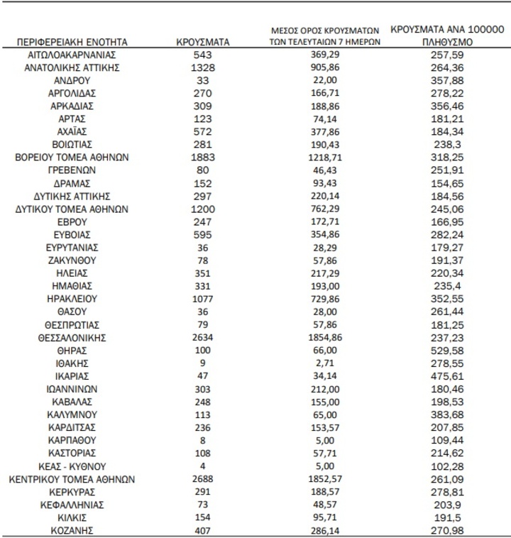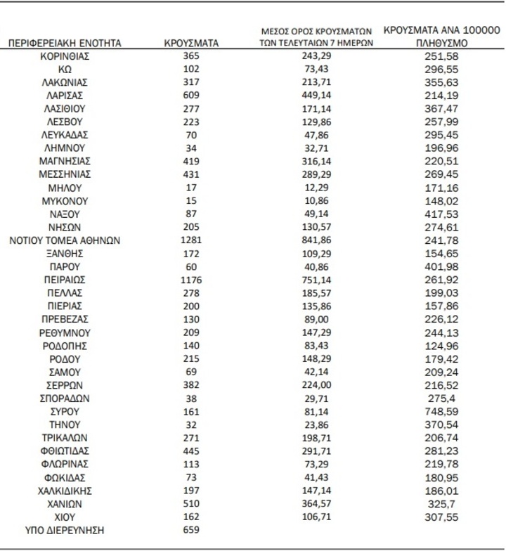 Μάλιστα στις τρεις από τις τέσσερις περιφερειακές ενότητες του νομού μας οι μολύνσεις που εντοπίστηκαν ξεπερνούν τις 100 μόνο σε μια ημέρα!