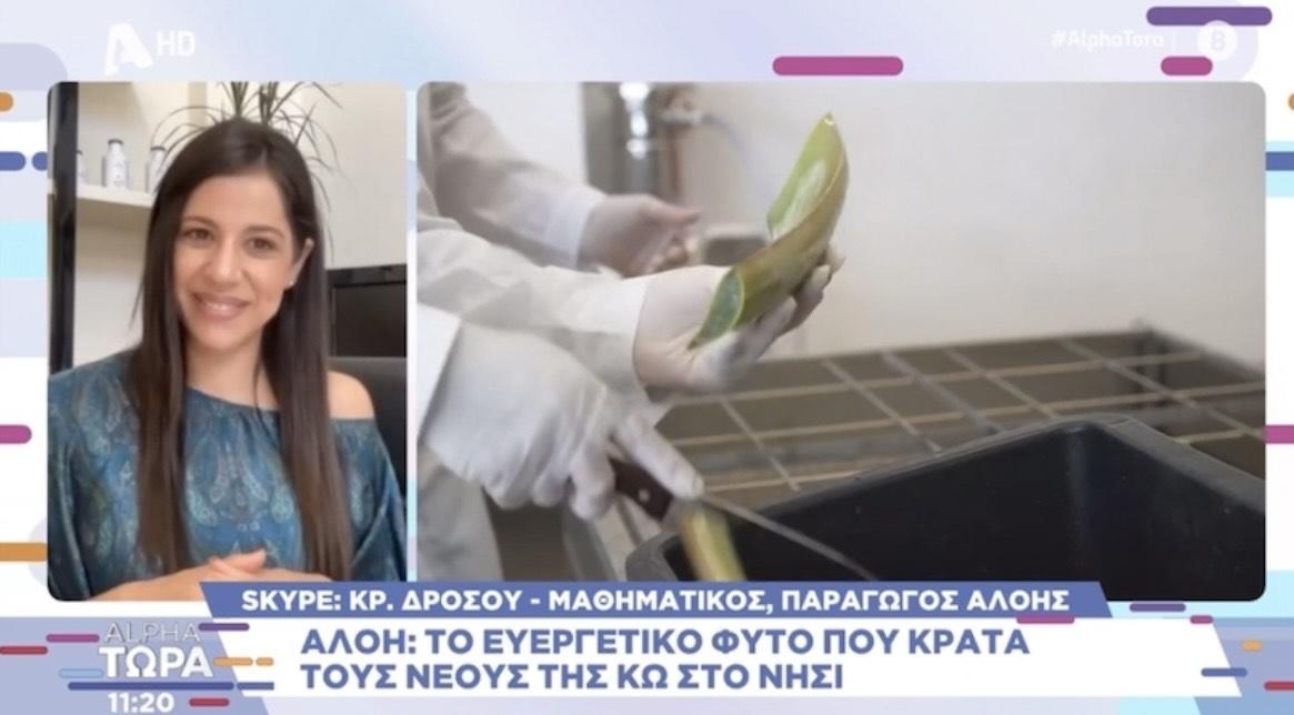 Καλεσμένη βρέθηκε στην εκπομπή ALPHA ΤΩΡΑ η Κρυσταλλένια Δρόσου, ιδρύτρια της pandrosia και μοιράστηκε τα πρώτα βήματα της εταιρείας, τις θεραπευτικές ιδιότητες της αλόης και άλλες χρήσιμες πληροφορίες που αξίζει να παρακολουθήσετε.