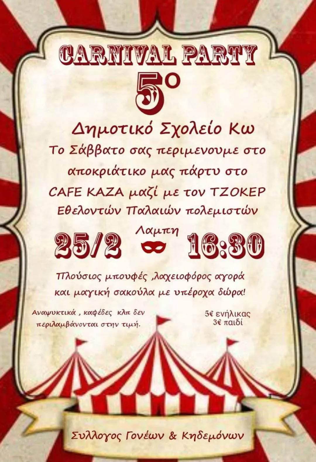 Αποκριάτικο πάρτυ από το 5o Δημοτικό σχολείο Κω