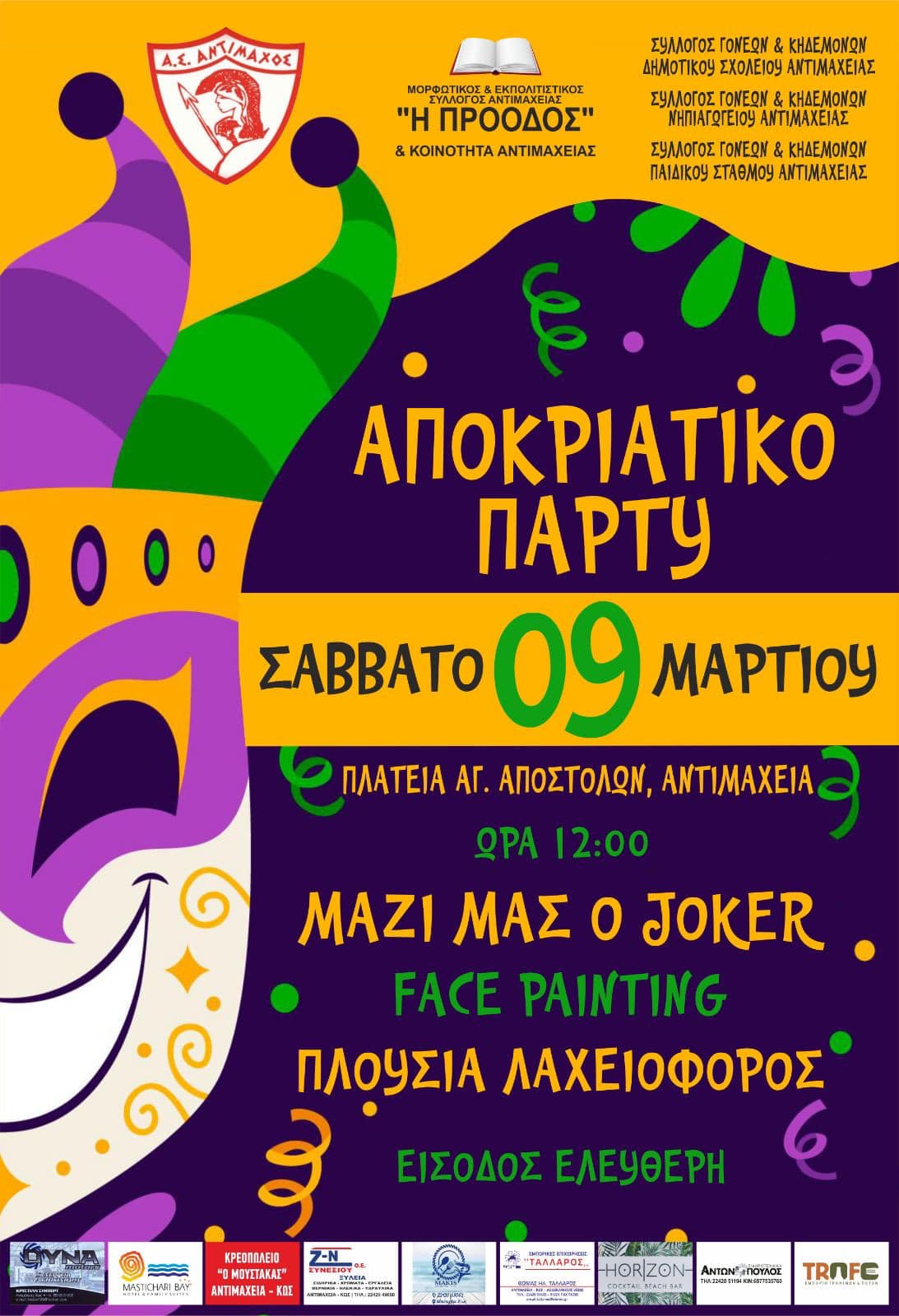Aποκριάτικο πάρτυ από τον Αντίμαχο και την "Πρόοδο"