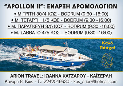 APOLLON II: ΤΑ ΔΡΟΜΟΛΟΓΙΑ ΠΡΟΣ BODRUM (30/4 - 4/5)
