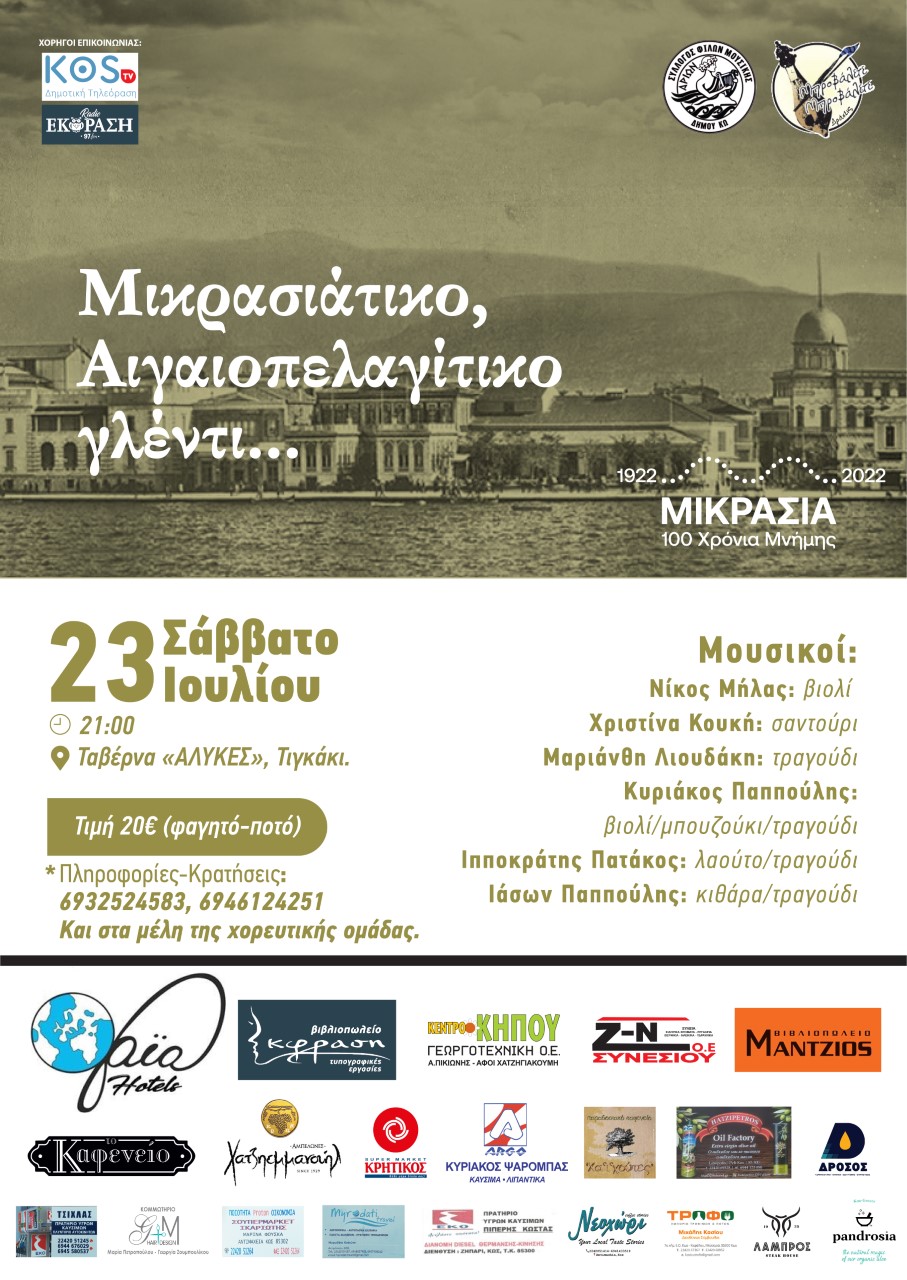 Το Σάββατο 23/7 το γλέντι και την Κυριακή 24/7 η μουσικοχορευτική μας εκδήλωση στα θερινά Ιπποκράτεια 2022!