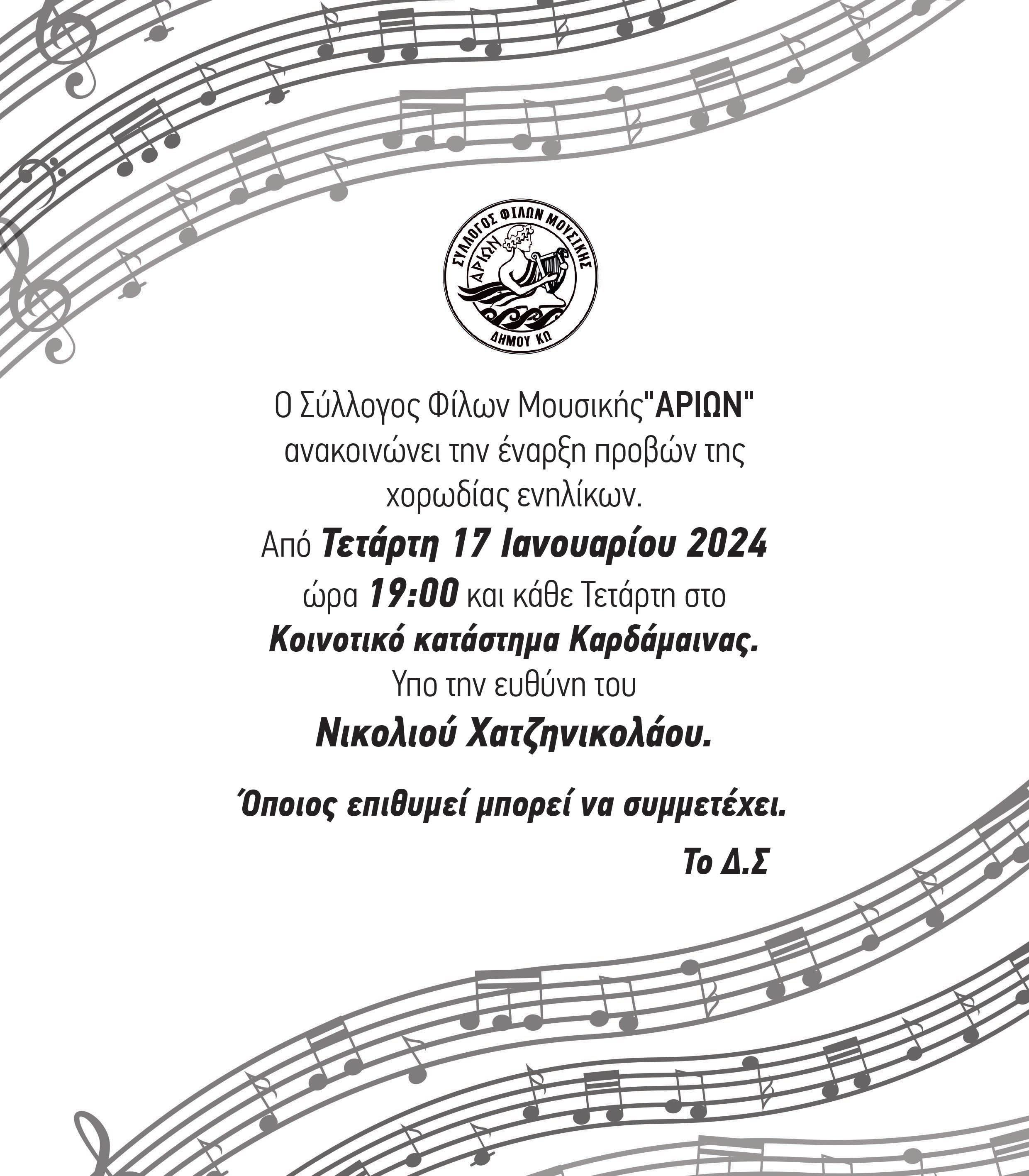Αρίων: Έναρξη των προβών της χορωδίας ενηλίκων