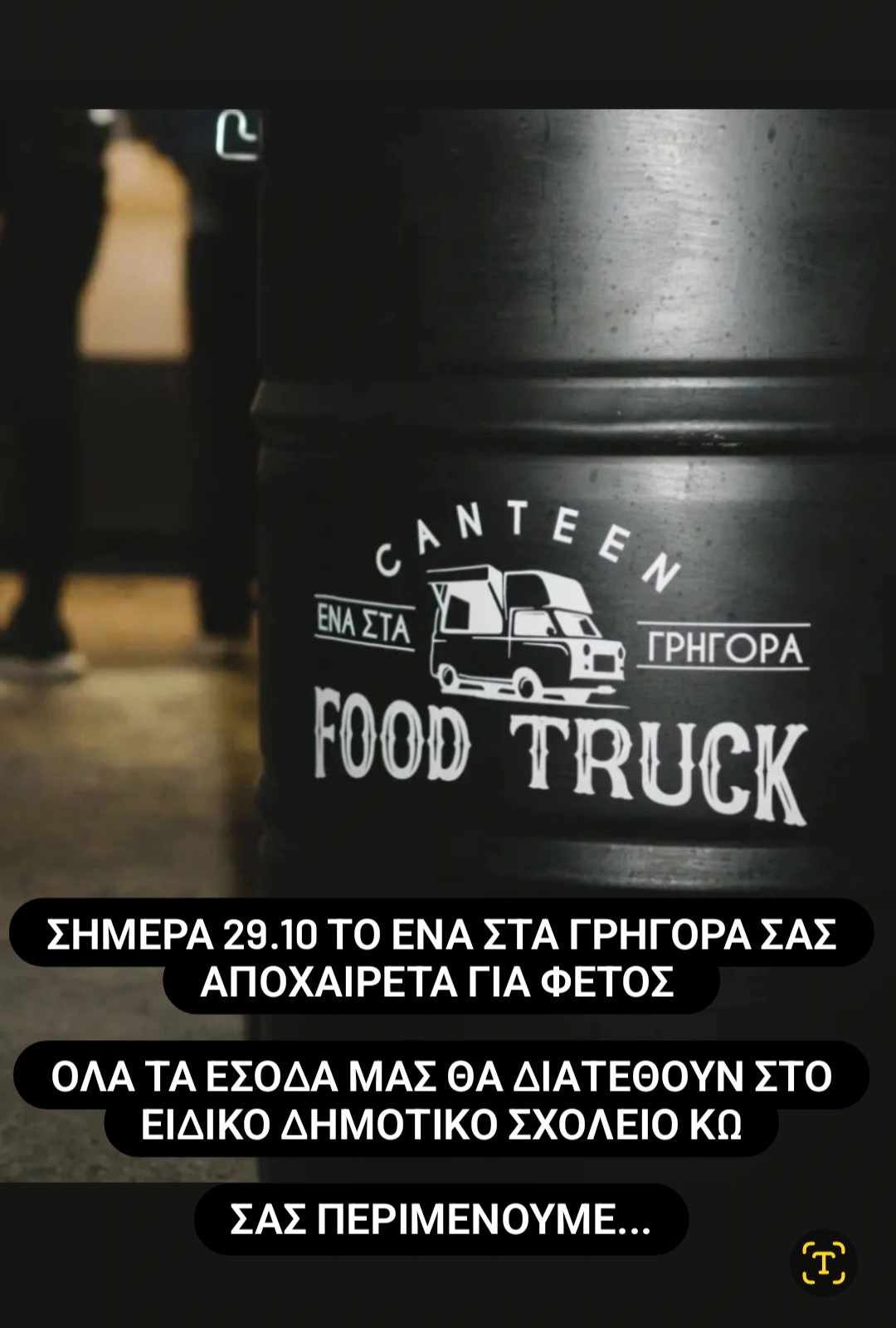 CANTEEN "ENA ΣΤΑ ΓΡΗΓΟΡΑ": ΟΛΑ ΤΑ ΕΣΟΔΑ ΣΤΙΣ 29/10 ΓΙΑ ΦΙΛΑΝΘΡΩΠΙΚΟ ΣΚΟΠΟ