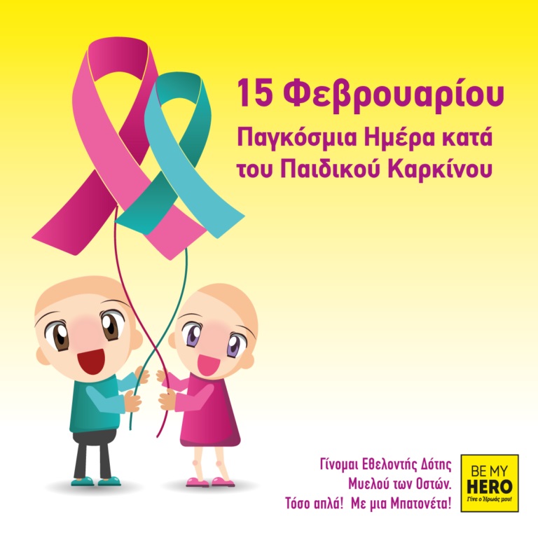 Η 15η Φεβρουαρίου έχει οριστεί ως Παγκόσμια Ημέρα κατά του Παιδικού Καρκίνου, μια ασθένεια σπάνια στη παιδική ηλικία, να αποτελεί- ωστόσο- τη δεύτερη αιτία θανάτου στα παιδιά. Η έγκαιρή διάγνωση και η ευαισθητοποίηση όλων μας να γίνουμε Εθελοντές Δότες Μυελού των οστών μπορούν να αποβούν σωτήριες.