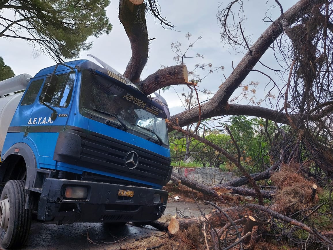 Δέντρο στην Ελ. Βενιζέλου έπεσε πάνω σε βυτιοφόρο της ΔΕΥΑΚ (ο οδηγός ήταν μέσα)