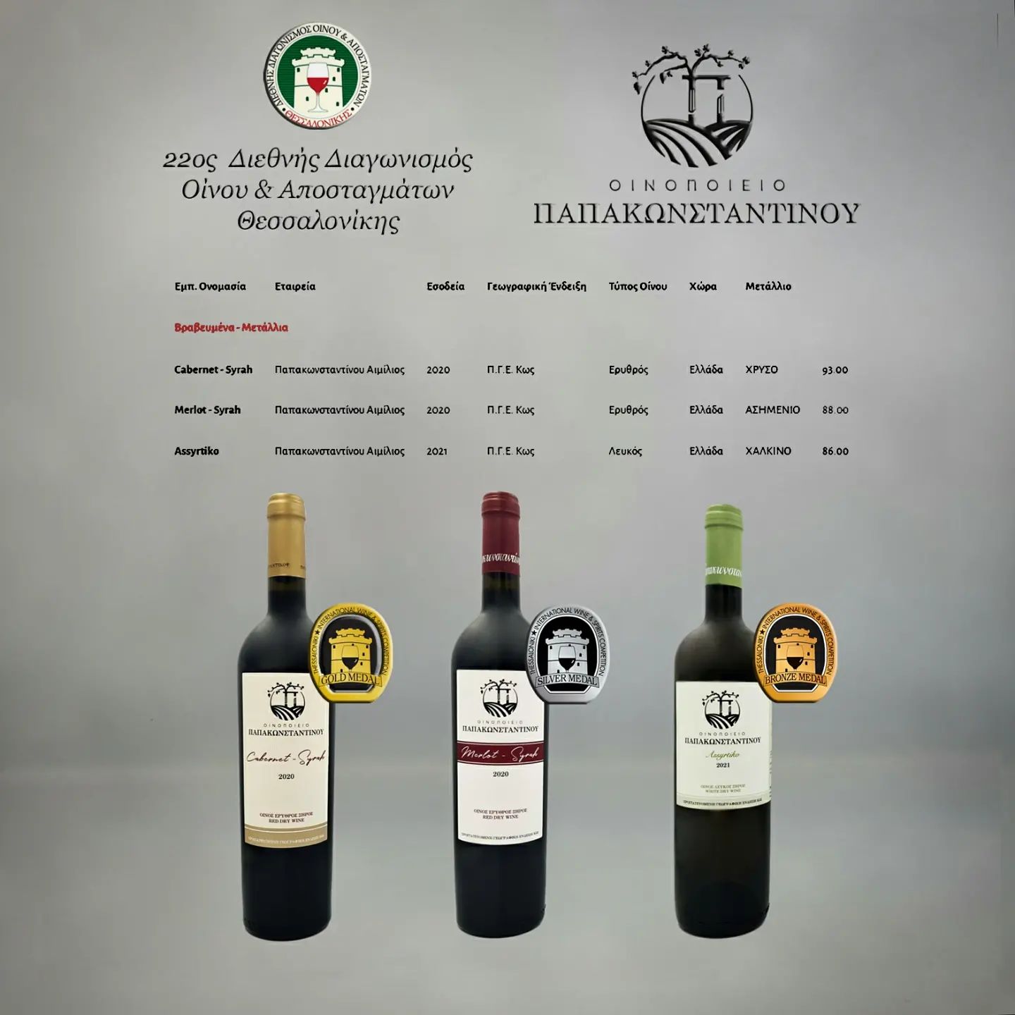 Το οινοποιείο Παπακωνσταντίνου από την Κω, κέρδισε 3 μετάλλια, επιβεβαιώνοντας για μια ακόμη φορά, την υψηλή ποιότητα του Κωακού κρασιού και την ποιοτική επεξεργασία στο οινοποιείο Παπακωνσταντίνου.