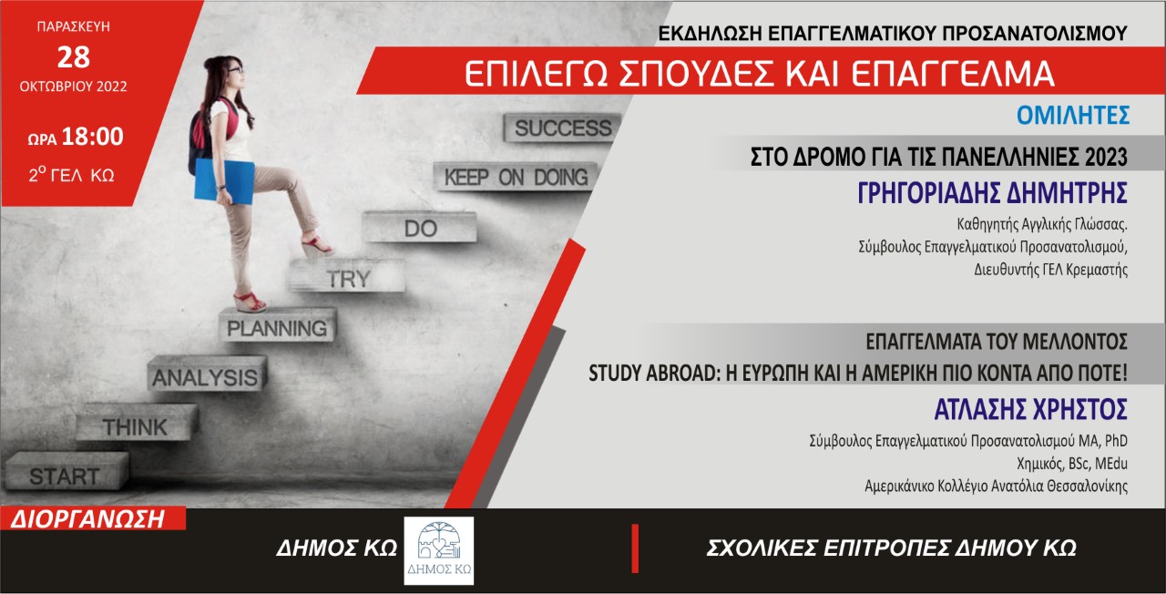 Δήμος Κω: 28/10 εκδήλωση επαγγελματικού προσανατολισμού – Επιλέγω σπουδές και επάγγελμα